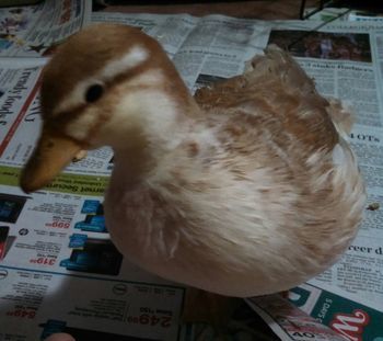 Muscovies are your birds then. Super quiet. They're very good seasonal layers, reliably go broody, and are pretty sociable. Not all people are into their faces though, so if you don't think they're pretty enough for the pool, don't get 'em (or get them and let them win you over with their tasty eggs, charming personalities, quiet dispositions, great mothering skills, gourmet meat, and other awesome features!). They do fly well, so you may have to clip them, and they may require extra heat when it gets super cold out. Mallard-derived breeds(everything that's not a Muscovy) are superb in cold weather (they have the Dolly Parton chests and all kinds of insulating upholstery to keep 'em warm), but the girls are really loud, which may be a bigger turn off to neighbors. They also tend to have huger, splattier poops all over the yard and are more rapacious throughout the year.I wondered if ducks even laid in winter lol. See this friend lives in a rental in town with absolutely no yard. She has the most adorable little girl. Anyway she has been hatching a few chicks here and there from my eggs and we house them here so they can have their own fresh eggs and meat. While she was candling her eggs the other night her little girl kept asking which one the duckies were in lol. So she wants to hatch a few ducks as pets for her baby. BUT if we are going to mess with ducks then I might as well get a few myself and I would want a dual purpose type. But I also do have neighbors close by. Their pond would have to be a kiddie pool or two that im sure i will have to clean out every few days lol.