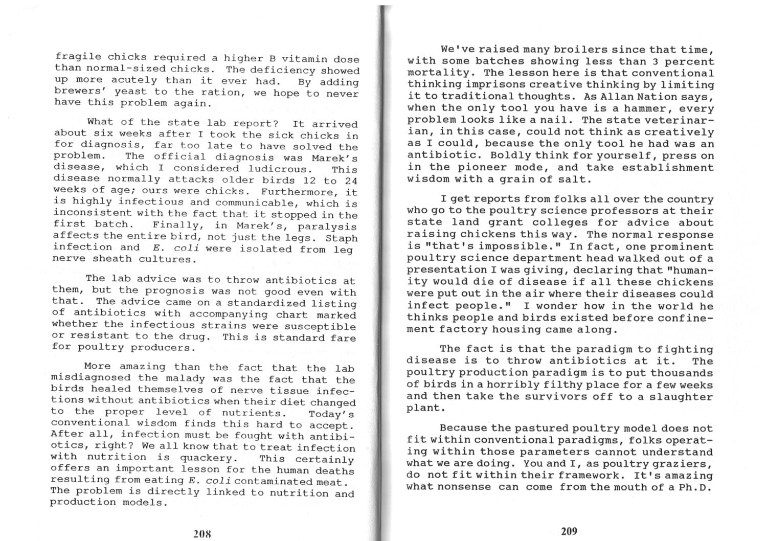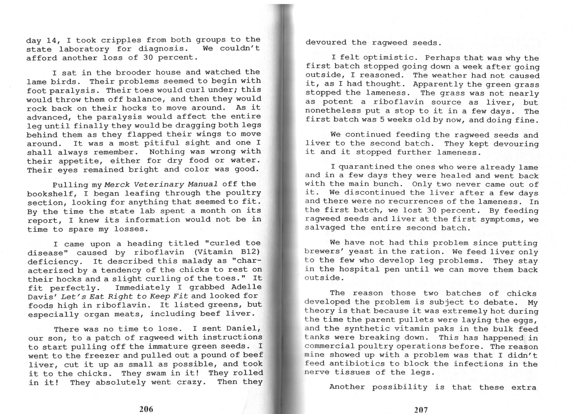 Someone had remarked earlier how they wondered how the birds could be fine one day and not able to walk the next. In another part of JS book, he mentioned that was what happened. One day they were in that condition. After feeding the liver, they recovered quite quickly as well.