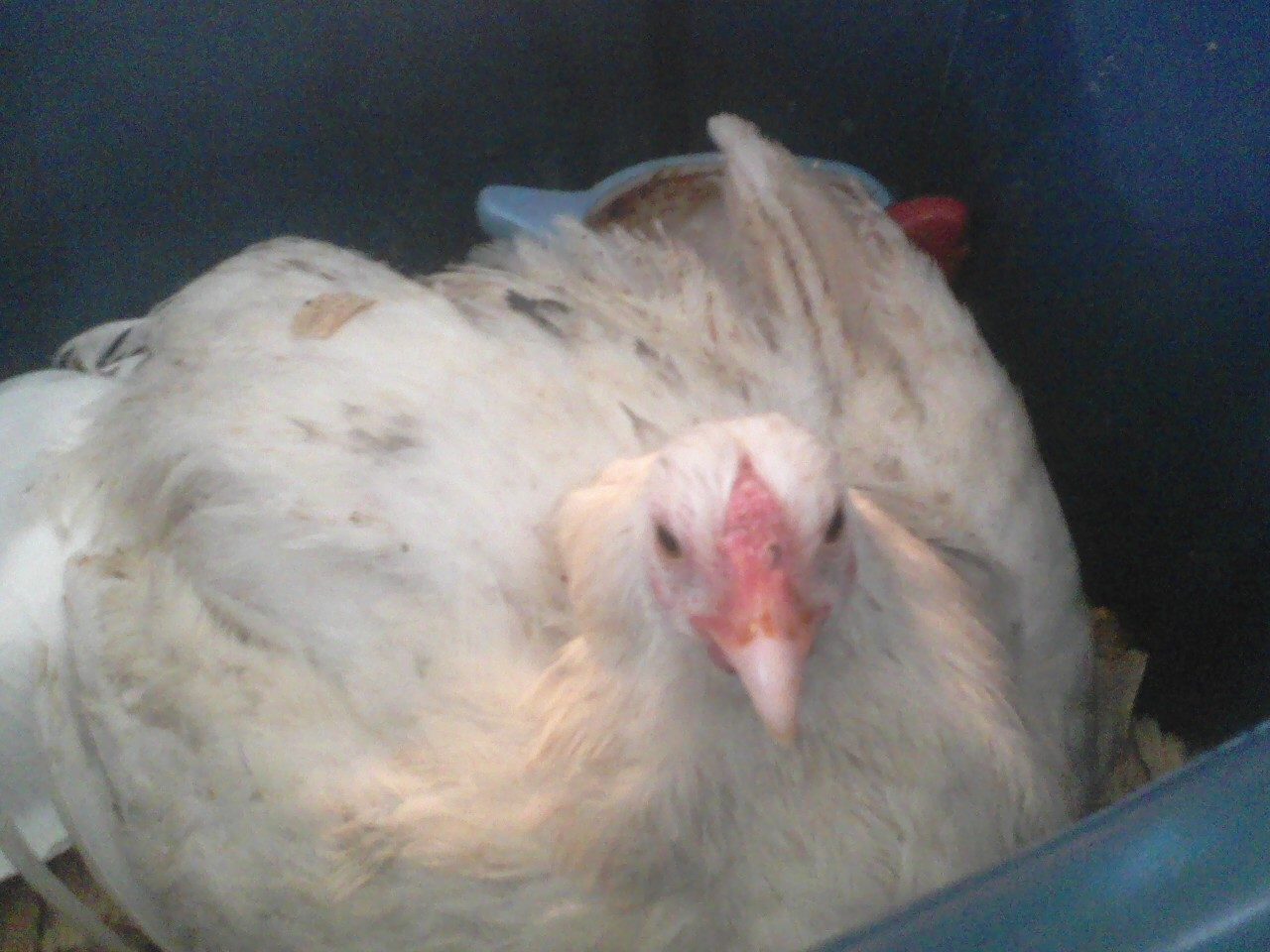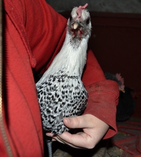 Affected "chick" in this case is probably four months old (@jchny2000 and @LonelyPageTurne --you two might know his exact age better, but he's a rose-comb clean-faced progeny of jchny200)'s splash Maran). I've got him on Denagard (just in case) and electrolytes/vitamins. He does have some bruising around the hock joint, but it's pretty minor and obviously hurts to tinker with it (he nipped me this morning). Poor buddy. Going to have to name him Mr. April because of his cute little "rain drops".