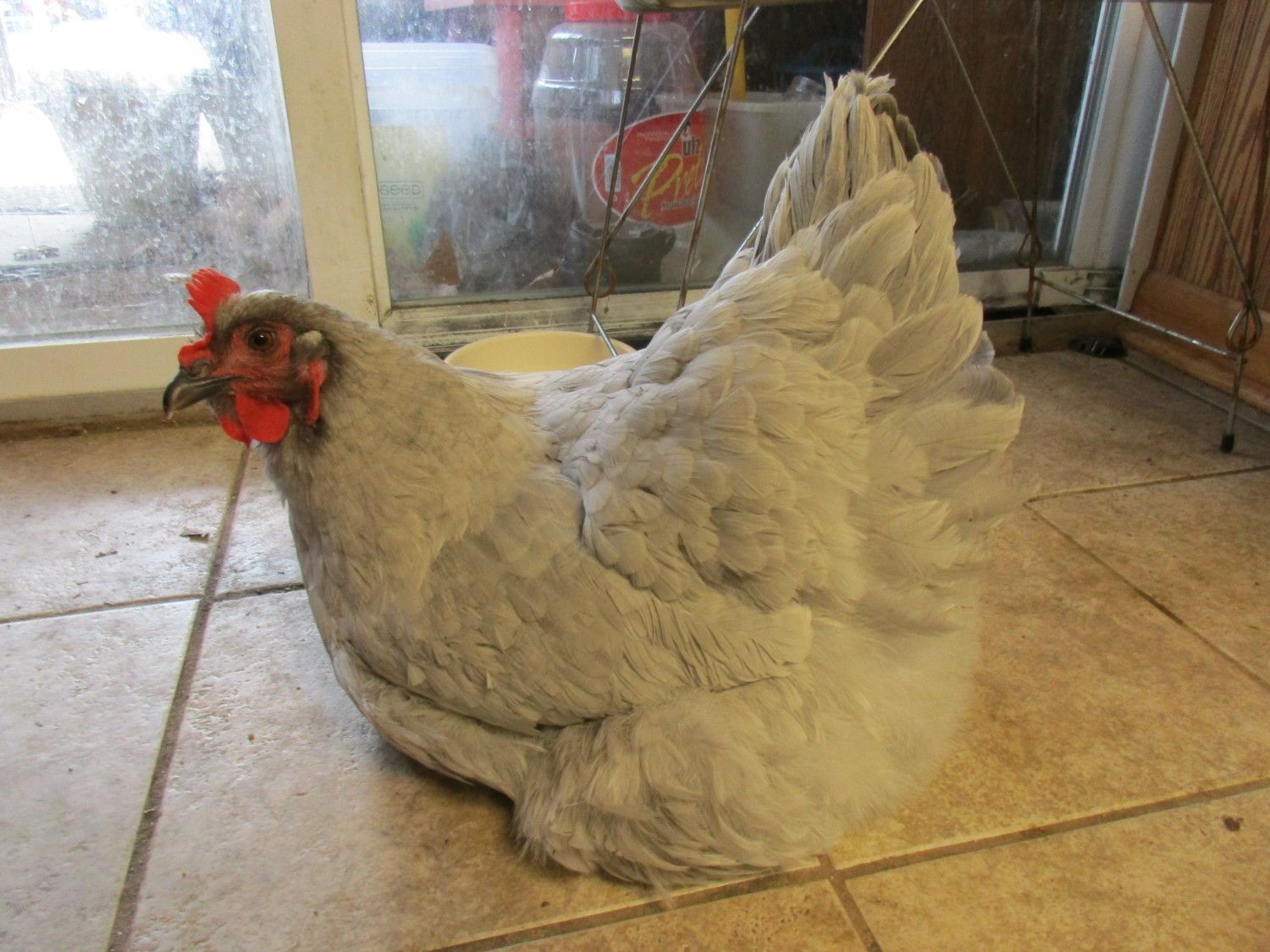 Cuddles walking around the basement & looking to go outside. I know she must miss her flock.