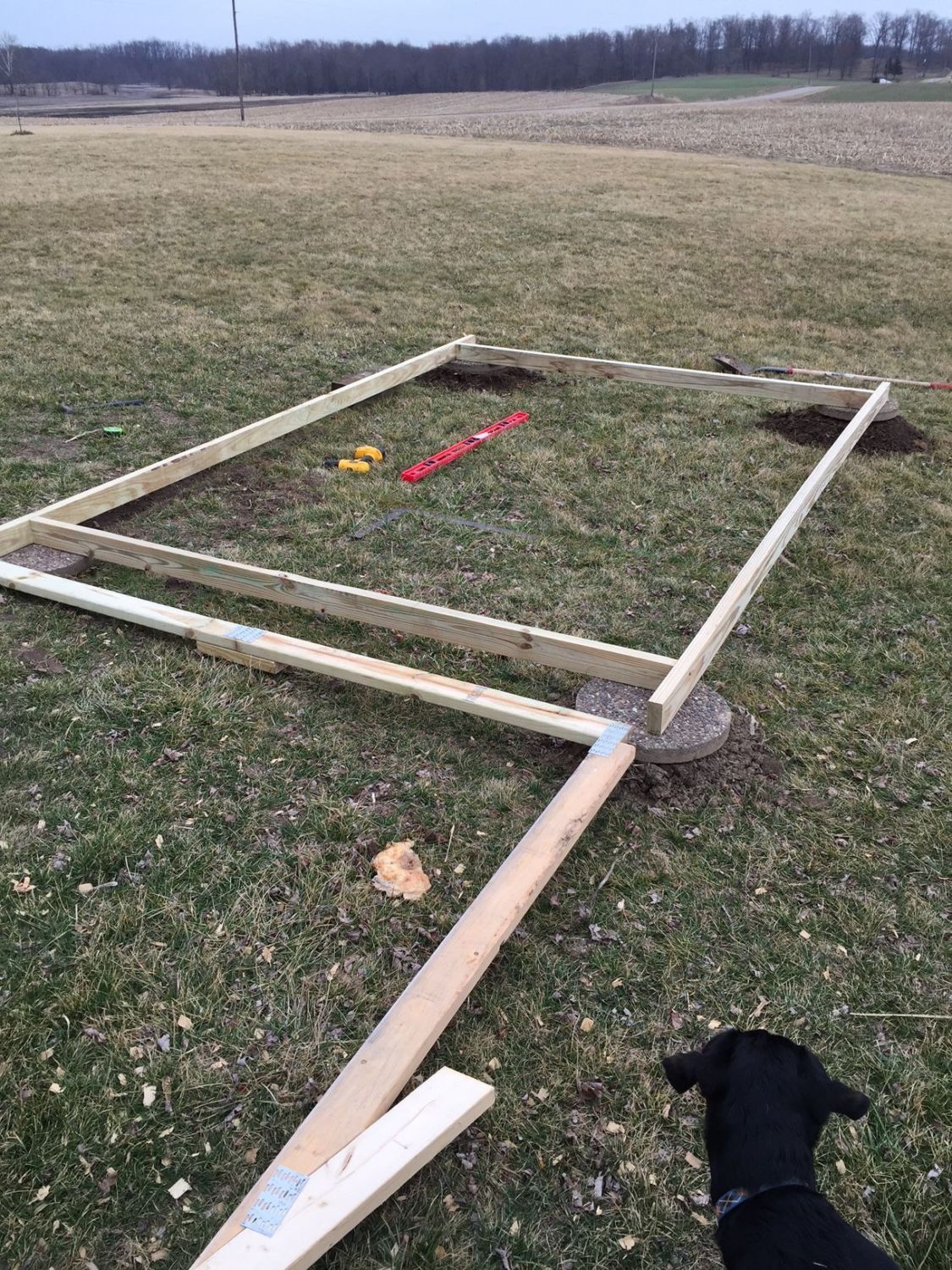 The weather finally broke, the materials are here, so it's day one of work on coop 2.0. I'm unnaturally excited to get this built and have some cool things planned for the interior I think, but first it has to get framed up. It's going to be roughly an 8x12 coop, with 8x8 for the birds, and 4x8 for feed storage/etc. The wind has made it tough this morning but I got the worst of it done before it got too bad. I'm glad I started early though.