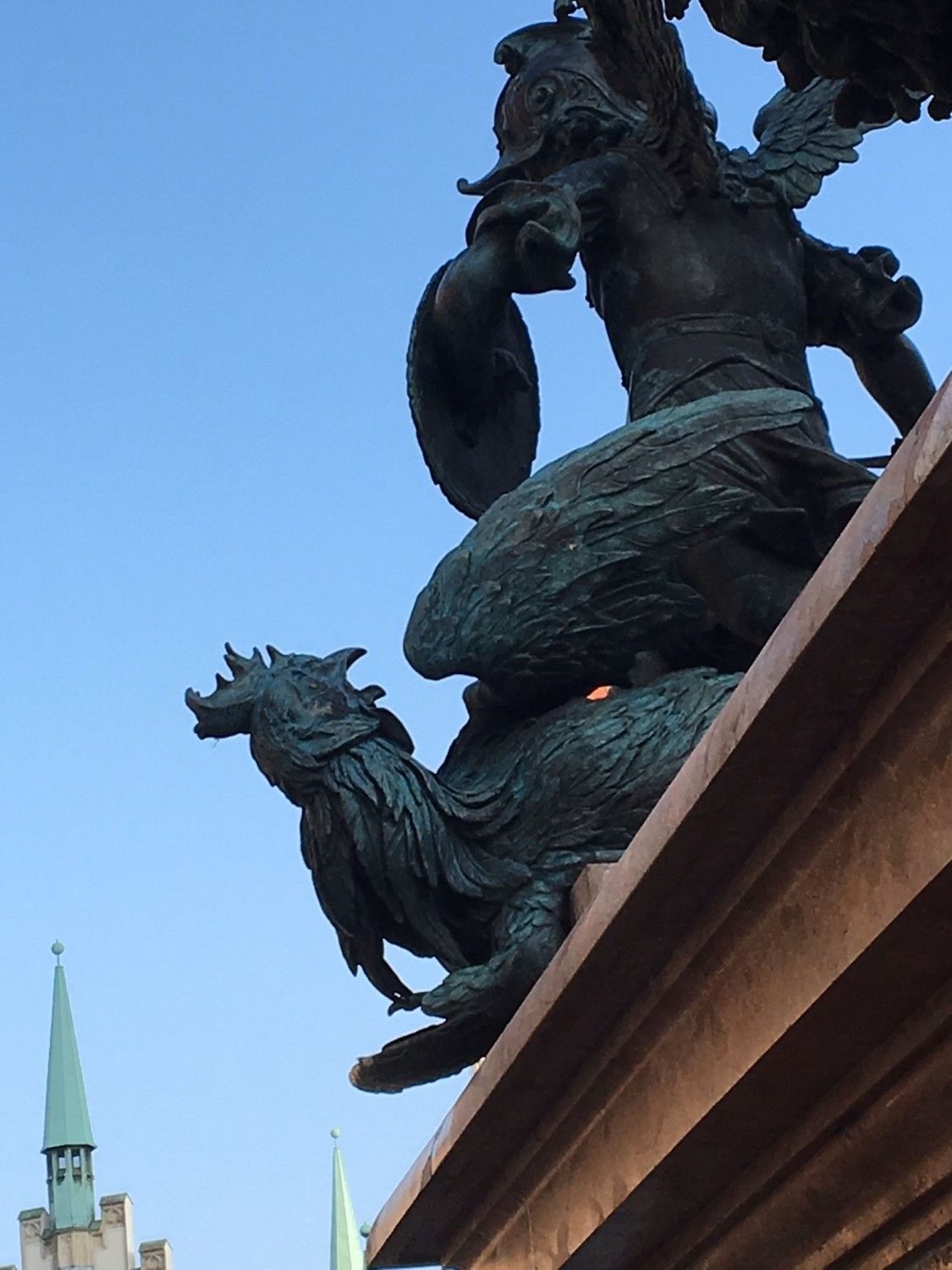 Thanks for the hatching wishes. Since you asked... Germany was great. It was my first time. We spent most of the week in Munich with a day trip to the Alps and one to Dachau. My Germany vaca in 9 pictures: (Glockenspiel, lederhosen, steins, Dachau concentration camp gate, Marienplatz square, German guy in Hofbrauhaus, Raphaels Madonna and child, the Alps, Schloss Nymphenburg Palace) Of course there were instances of poultry, where I took pictures especially for he BYC'ers: (guinea pillow, rooster sculpture, rooster painted sign)