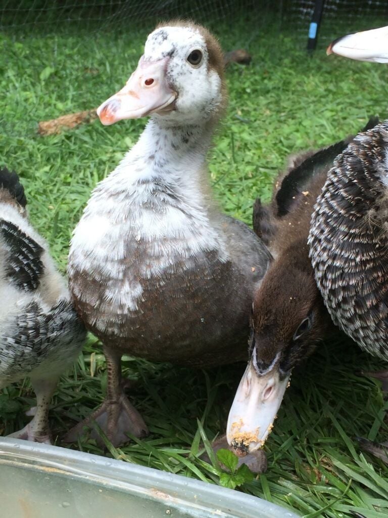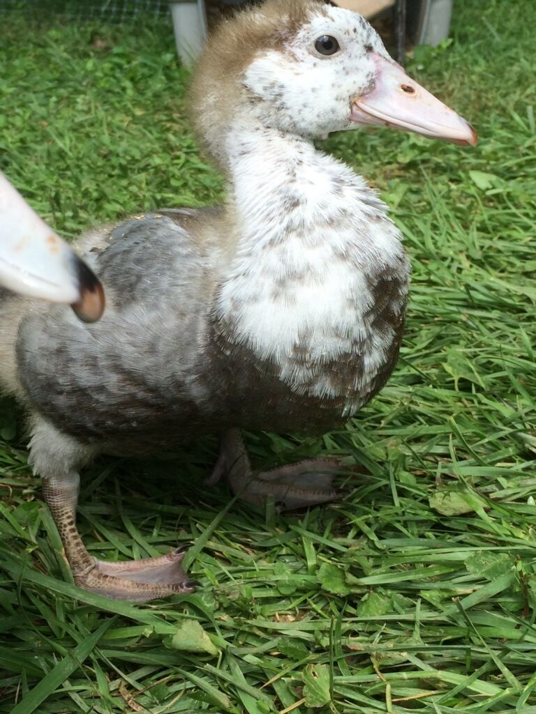 I have hatched 4 atipico muscovy but only 1 that isnt black, here she is before and now...so cute!