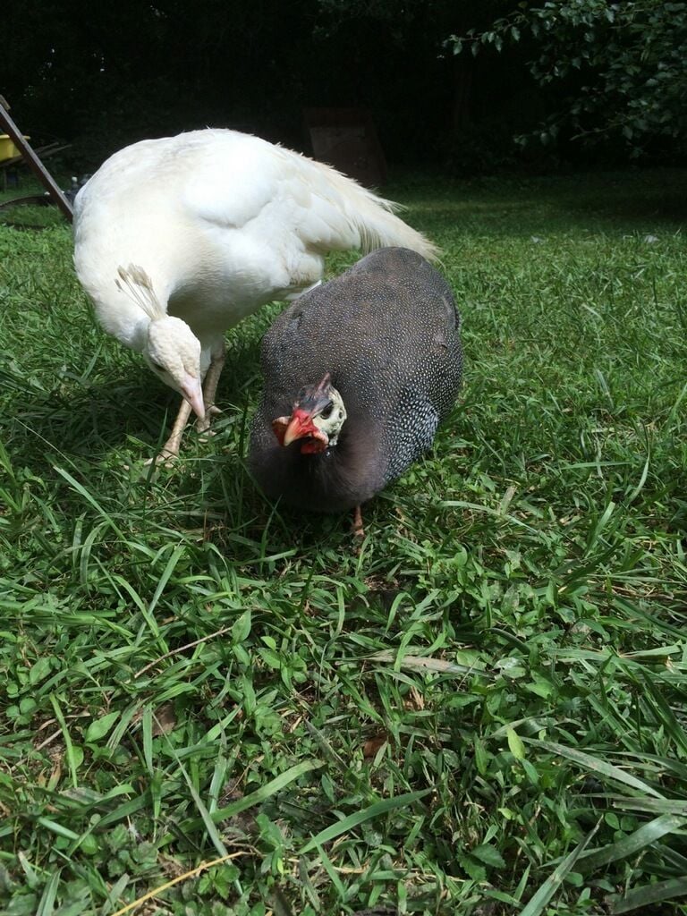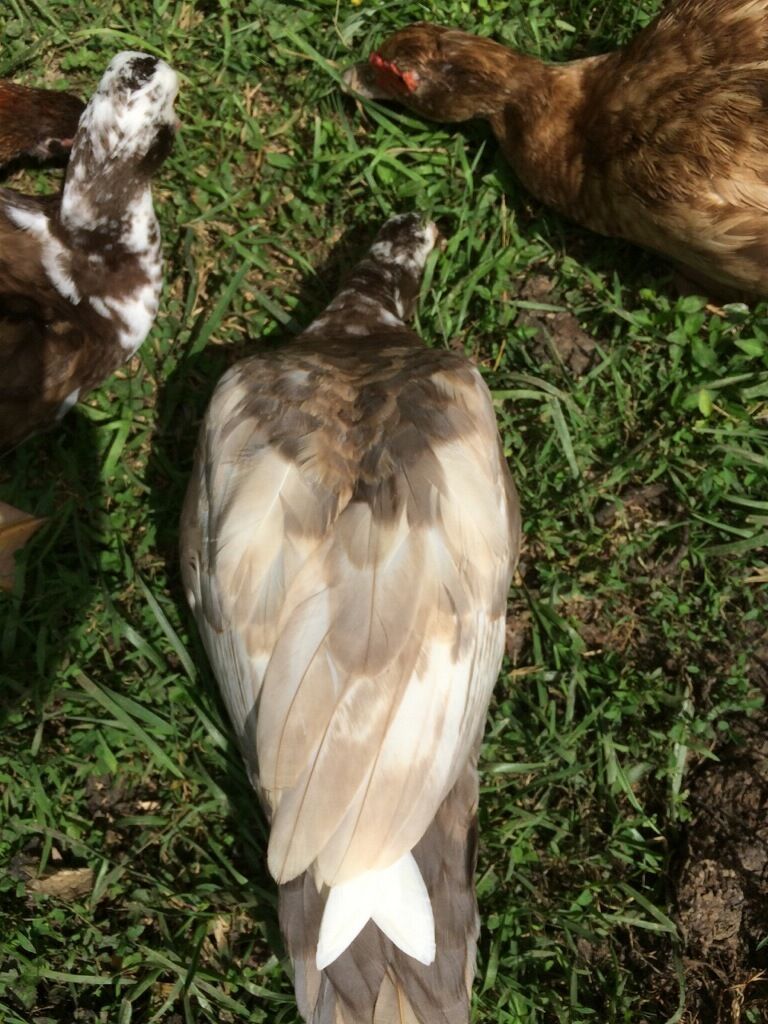 Took some pics today...mostly of the Muscovy..a guinea and peas in there too.