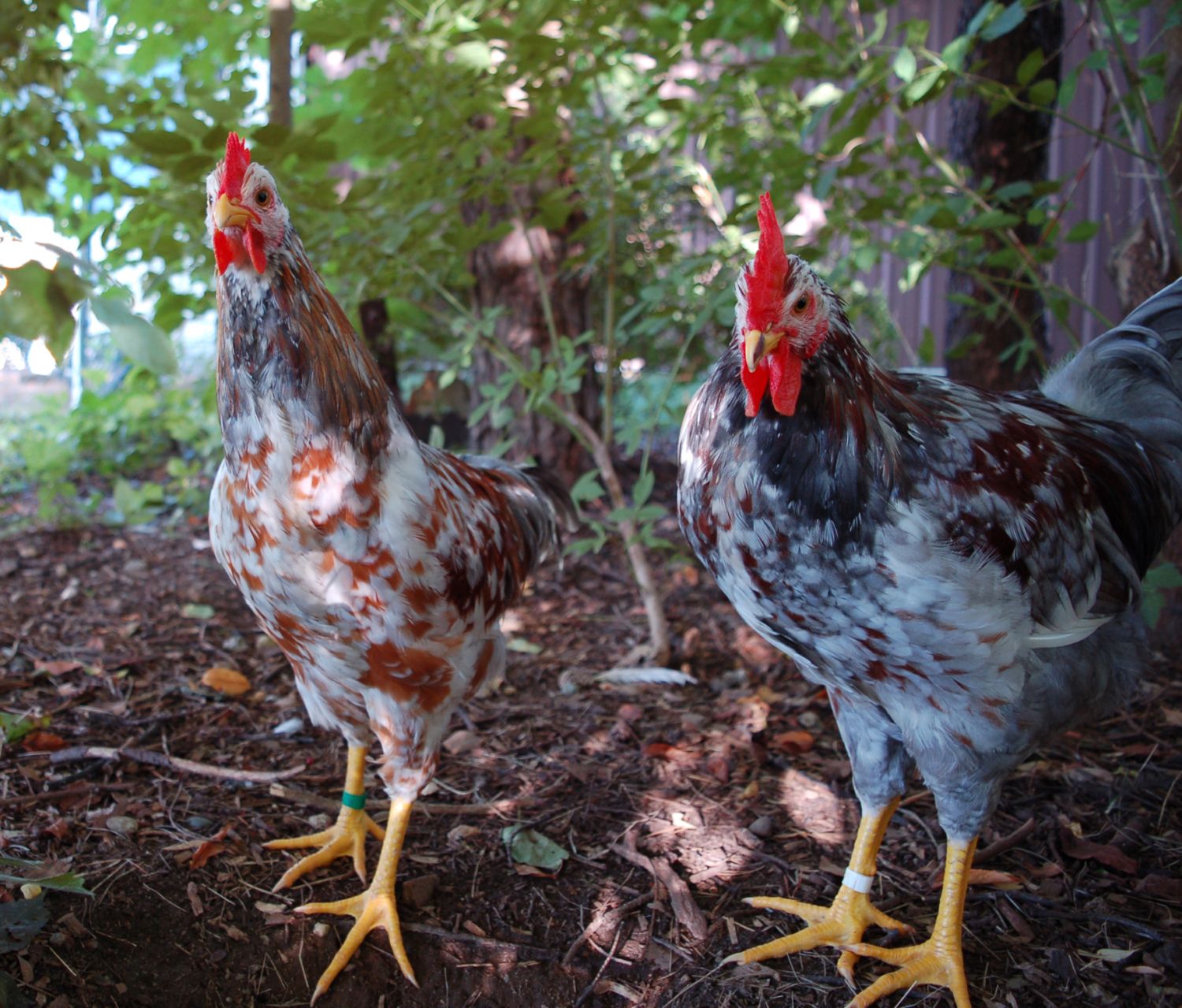 Leghorns. Love 'em. They're perky, active, quick-witted birds who are delightful and beautiful to watch. Miss the big white eggs. will have to get a couple more. All of mine wind up eventually going to jchny2000 because we're buddies, and she likes Leghorns a bunch (which makes them good pick-me-up gifts).