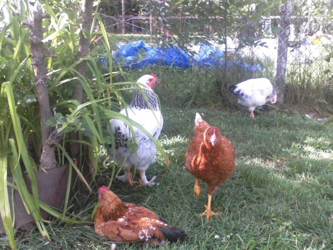 I've had to confine them recently to a ~250 sq ft run and the 10x10 coop because we've had bird-nabbing stray pitbulls and birds of prey roaming through our nieghborhood. Birds are adjusting pretty well. They're getting a lot of fermented feed and scratch grains (been lacto fermenting in a 5gal bucket---birds love it!). Mixed in yeast and grains, and sometimes human food and scraps. Birds are really fond of Ramen noodles in their fermented feed, btw, because as soon as I scoop some out, the birds are clamoring over each other to nab of with them! Birds seem to be eating a bit less now that I'm fermenting more--plus feathers seem to be coming back in better! Woot! Getting bigger eggs,already, which is wonderful.