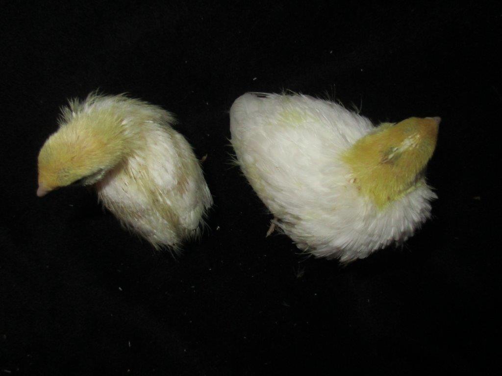 The small one is the "failure to thrive" chick. It's still smaller, but continues to eat & drink on its own. In fact, it refuses to eat unless its siblings are there for competition. Other than putting some some electrolytes in the water around day 2-3, we haven't done anything extra. I didn't feel right killing it, because it was eating /drinking & showing some growth. I thought that the chick would have caught up or given up by now.