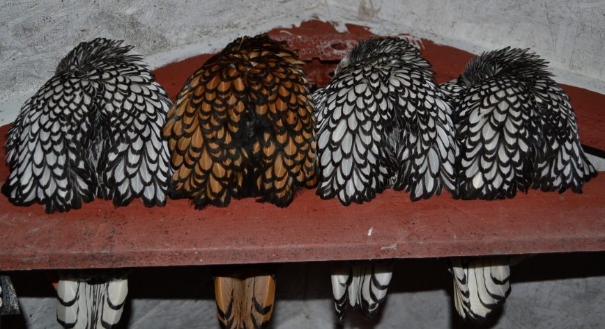 These are BEAUTIFUL girls!I don't know about any of the others, but the one in the front of this picture looks like a golden Sebright and the one directly behind it looks like maybe a silver Sebright.![]()