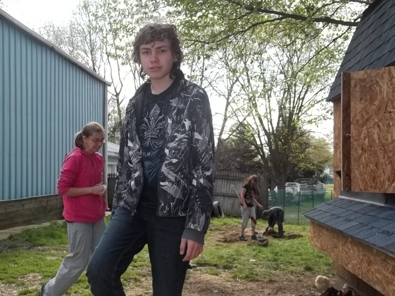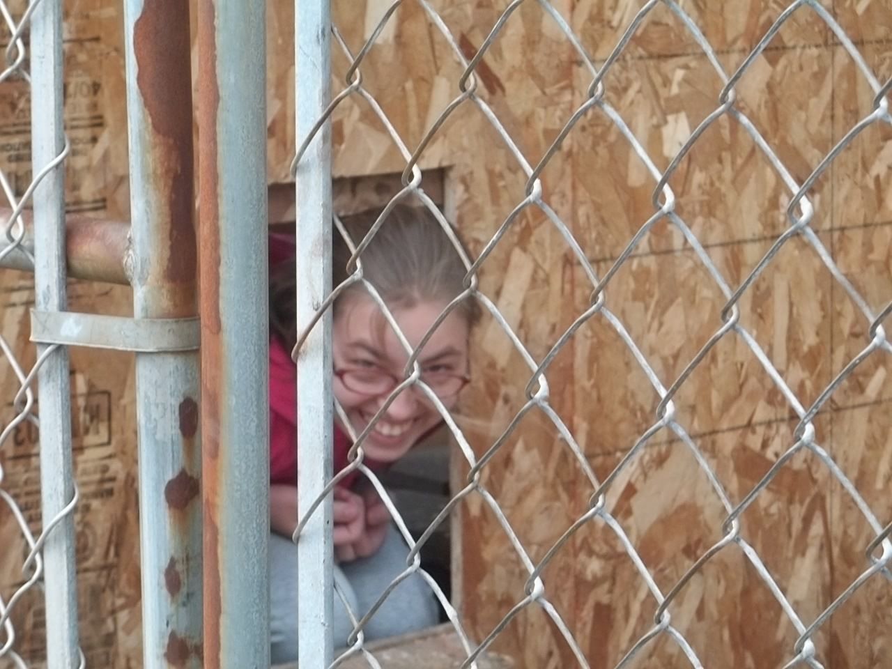 My niece trying to fit through the chicken door!!!My son the best chicken farmer!![]()