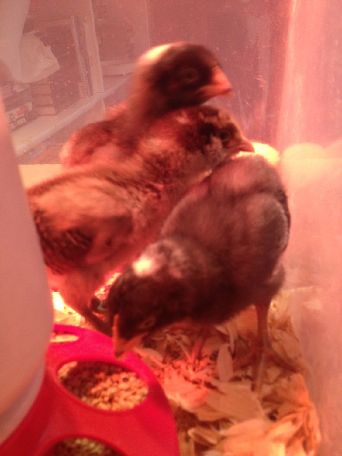 I'm very new to chickens, but it looks just like my chick Peanut Butter looked when we brought him/her home. Peanut Butter was sold as an Ameraucana, but I have since been told he/she is an Easter Egger. Here are a couple of pics. Peanut Butter is in the middle. This was last week. Still don't know if its a cockrel or a pullet, but its pretty.