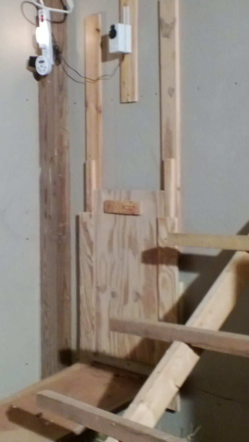 To make the latch, bend a coat-hanger wire, or preferably something a little springier as follows: