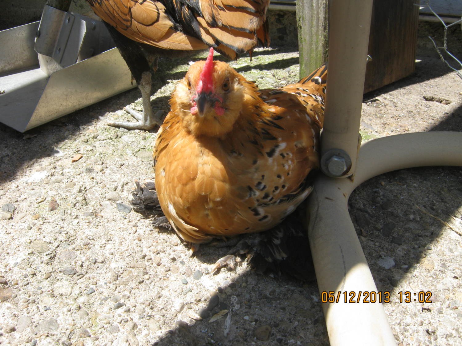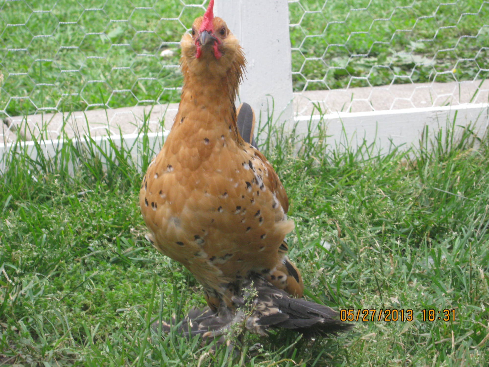 His name is Frizzle aka "happy chappy" We have two bantam hens we really want to breed him with but have no clue what they are. They came from the same bin just 1 month earlier.