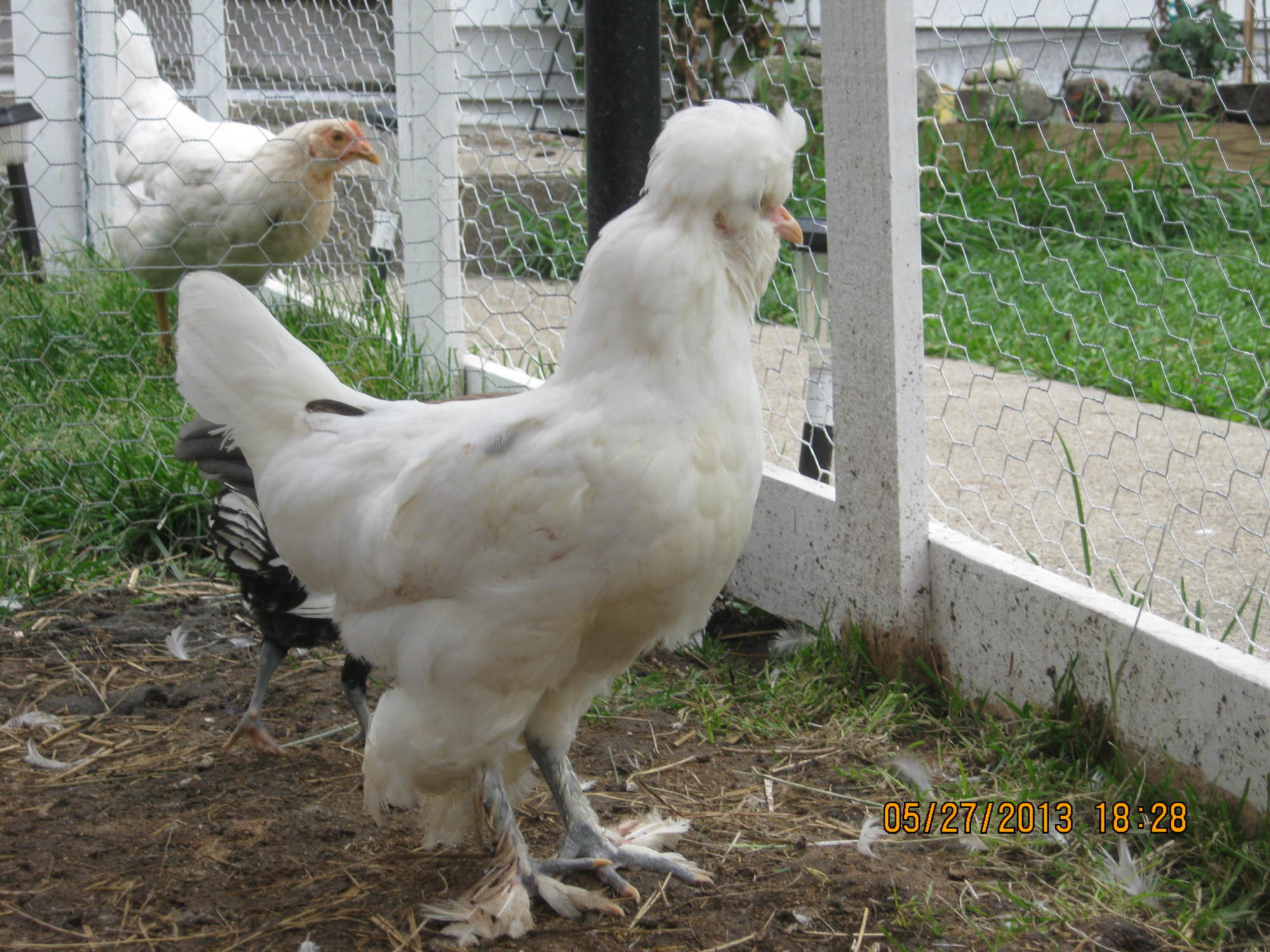 His name is Frizzle aka "happy chappy" We have two bantam hens we really want to breed him with but have no clue what they are. They came from the same bin just 1 month earlier.