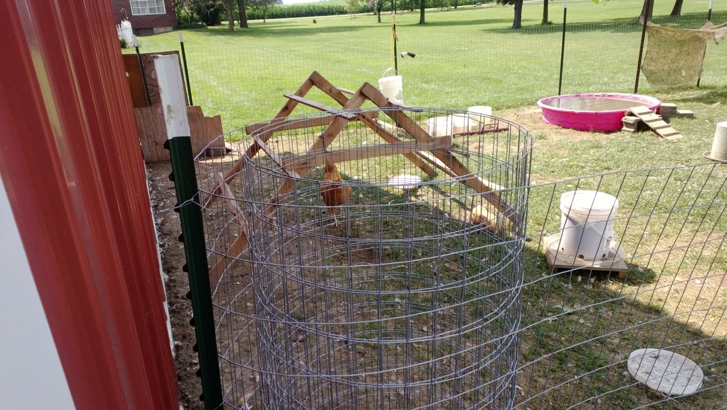 Are you going to have fencing for a chicken yard? If so, just get the fencing, unroll it vertically, making a circle fence-high.