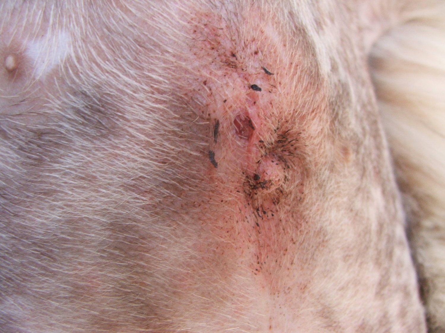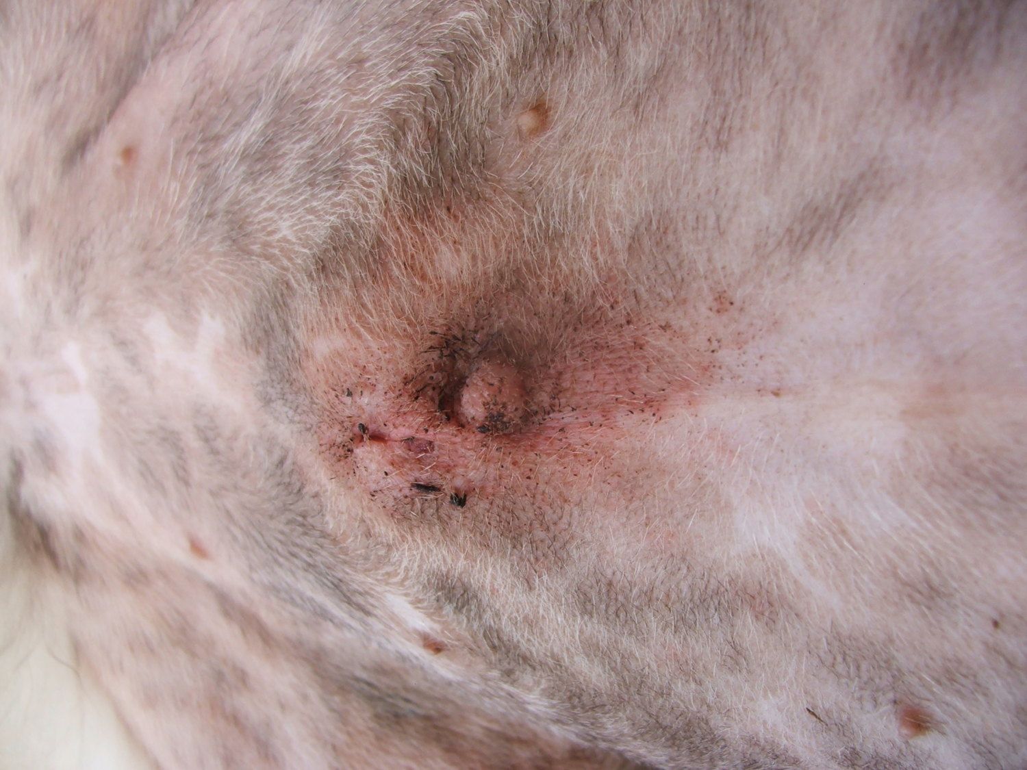 Iona has been really good with her incision, the only licking being when she licks her shaved belly. She has never targeted just the incision, and only licked it once or twice by accident. Yesterday I was gone most of the day and when I came back her belly looked bad. I don't know if it's serious bad or normal as I've never done this before, but they did a sloppy job closing her up and her sister looks good (they did a better job with her)