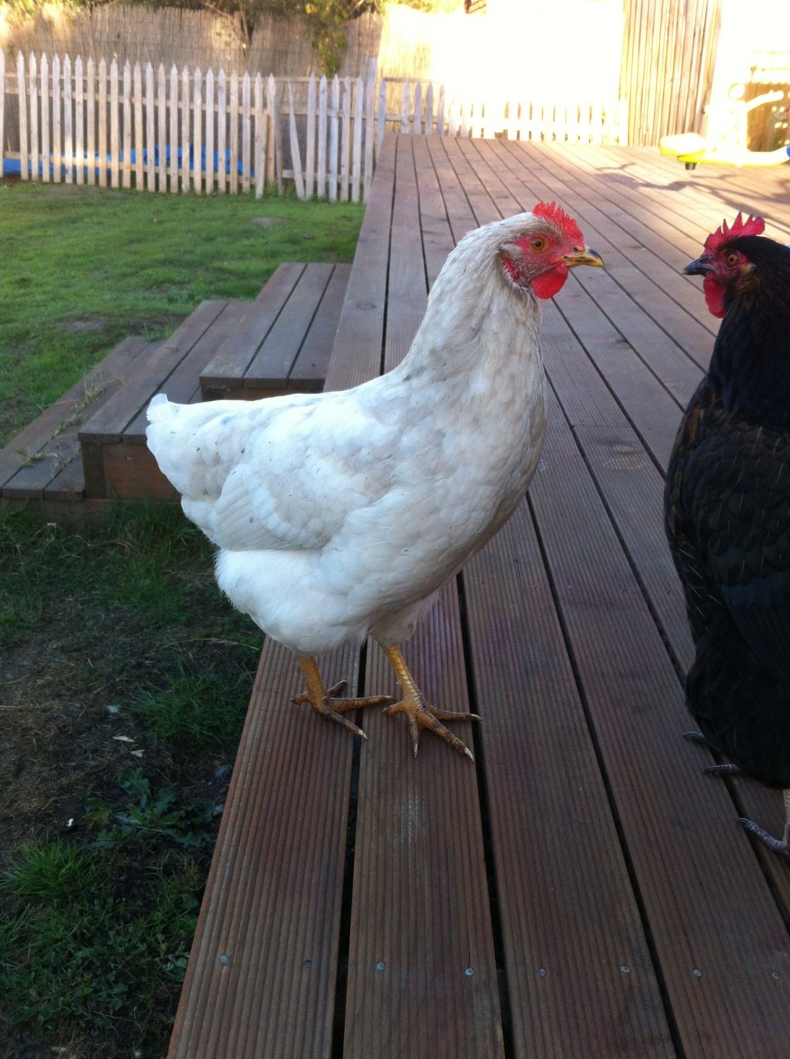 Mabel - Much quieter than Audrey, doesn't like being held but will follow us around the yard, she loves a dust-bath though and has dug massive holes in the garden in a bid to get just he right dirt!