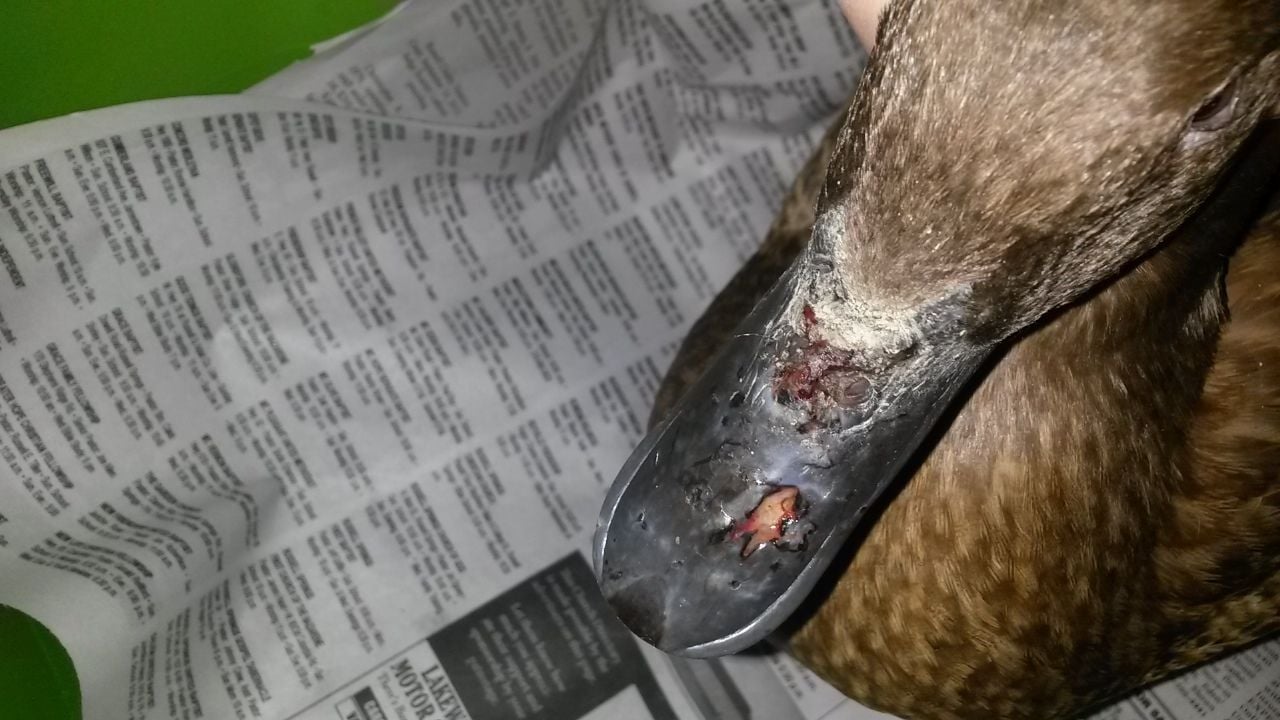 Hi! So long story short, I have an ******* chicken who hates my Khaki Campbell hen. I've kept them separated since she started being aggressive towards her, and until today it's worked. I got home from work today and found the duck with a large wound on her bill, I'm assuming from the chicken, since I caught her n the run with the duck (she flew over the fencing to get to their food). The wound is about the size of a dime and it looks like the beak has been torn off in that area, it also looks like the area between her nares has been attacked as well. It's not bleeding, and doesn't look swollen or infected. I've brought her inside, given her a warm bath, cleaned the wound and put some triple antibiotic (without pain reliever) on it. She's eating and drinking normally, and is clear eyed and alert. Right now I have her in a tote until I can arrange a larger area for her. Is there anything else I can do for her at the moment? I've only got a couple dollars to my name until payday(Saturday), so unfortunately the vet isn't an option until then.