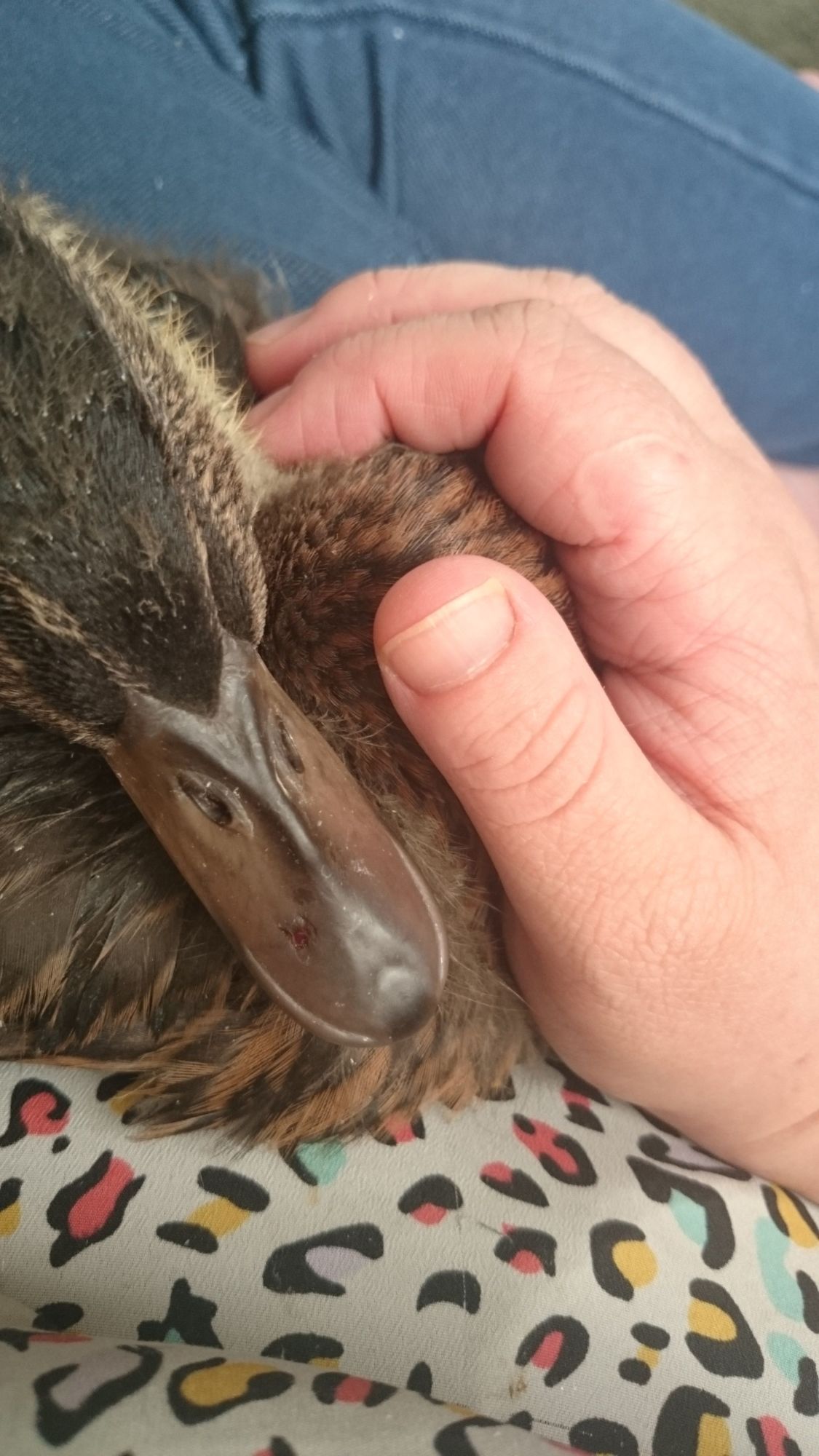So normally my dog and four week old duck are fine with eachother, best of buds but the duck tried to take food off the dog and the dog snapped at the duck. There's a single puncture on the top bill about half way down, it bled but not a lot.