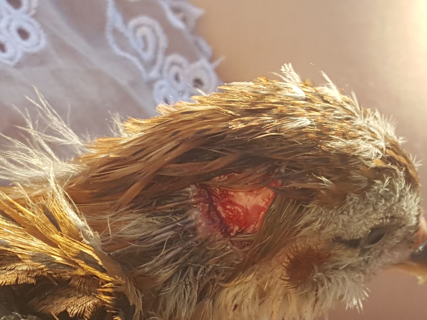 I immediately put cotton on it to stop bleeding and then neosporin. She's been wrapped in a washcloth and resting on couch all evening. Is there anything I can give her for pain? Or just watch the would and keep it clean? I seperated her from the other babies but have her close by them (they are still all in my house until next week).
