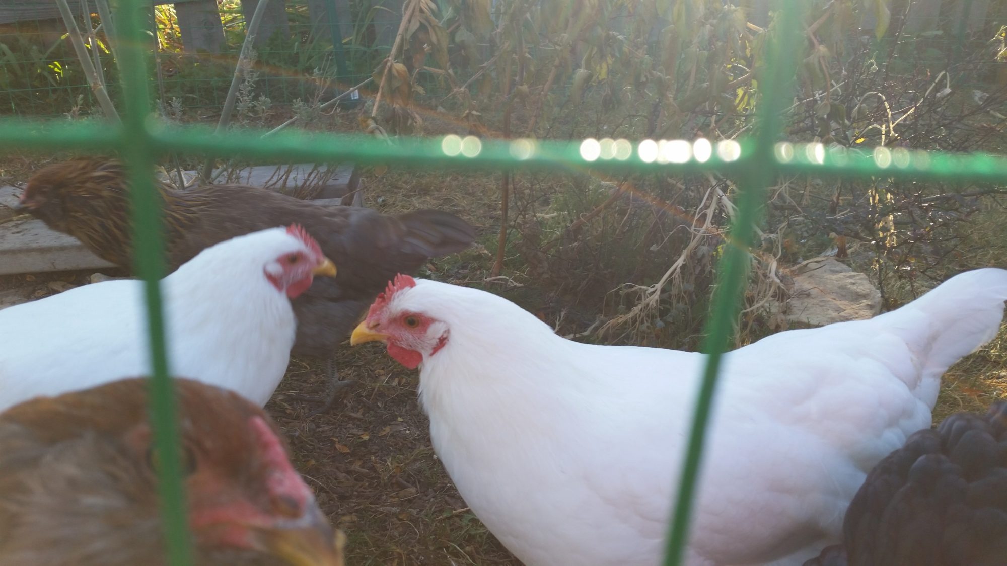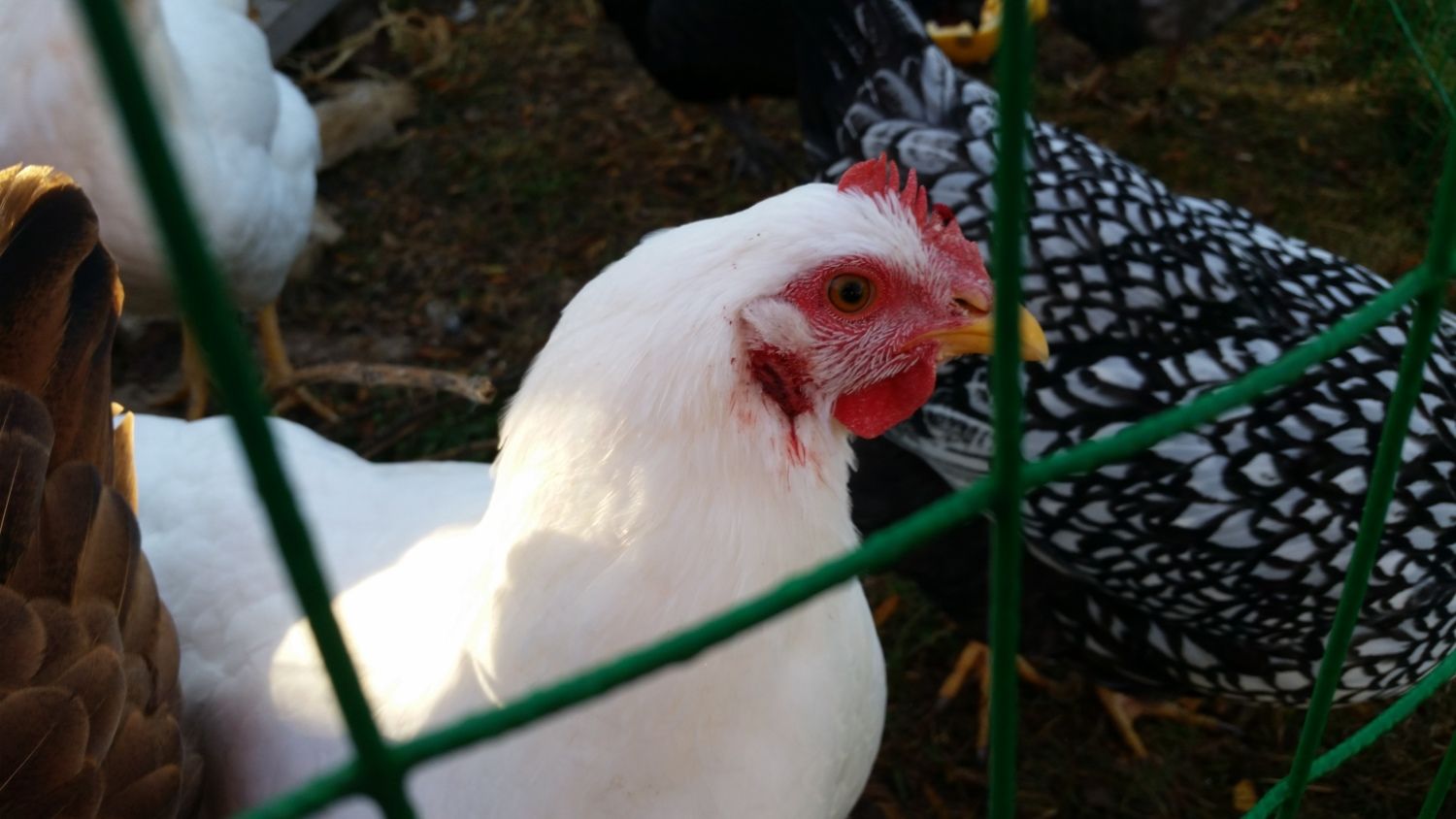 This is the "good side" (she's the one in front)and I can see her ear lobe is smaller than the other white Rock hen.