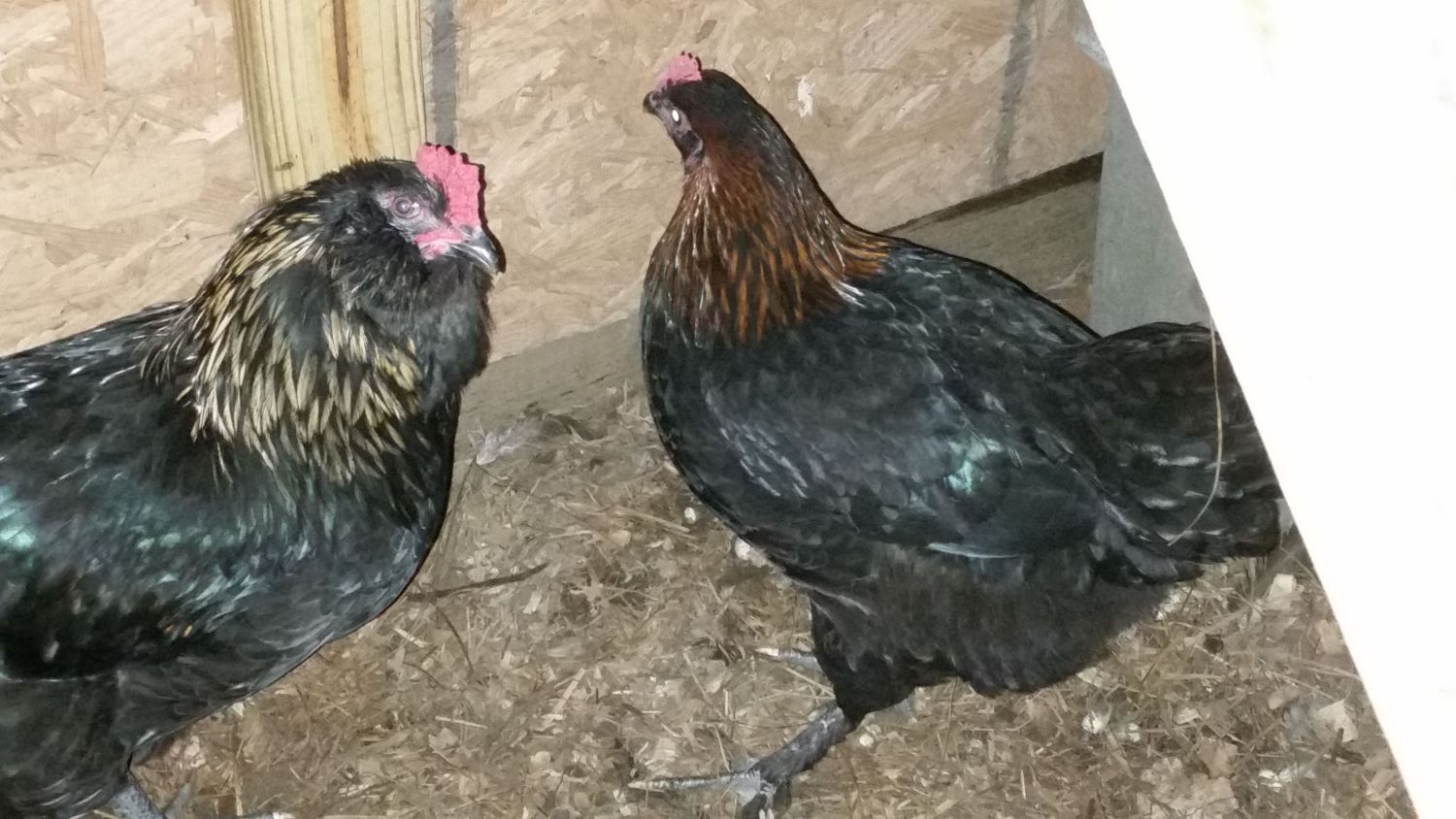 Comb Father and son almost the same = mama hen hasn t got the great comb to correct the fault.