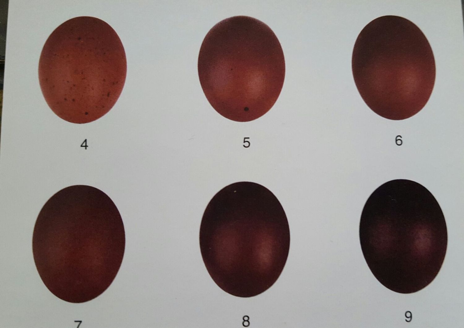 I saw this yesterday on the French Marans Club website but I thought it would not do me much good. I cannot read French. I do like your egg chart better than mine. Looks like my Cuckoos are laying a 2 on your chart.
