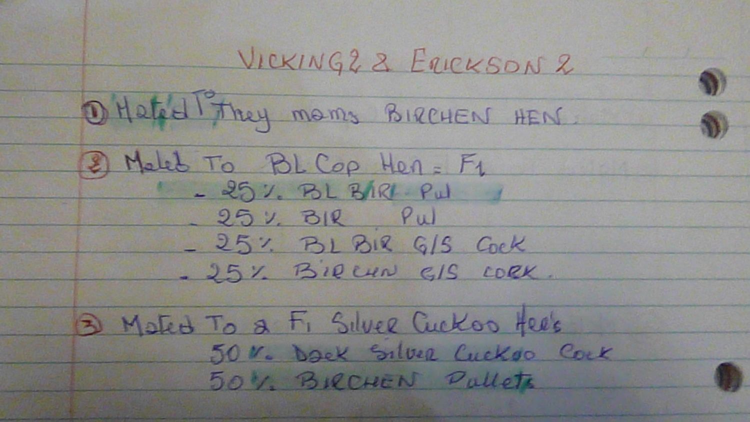 first chart Vicking 2 and Erickson 2 .both F3 Birchen cockerels