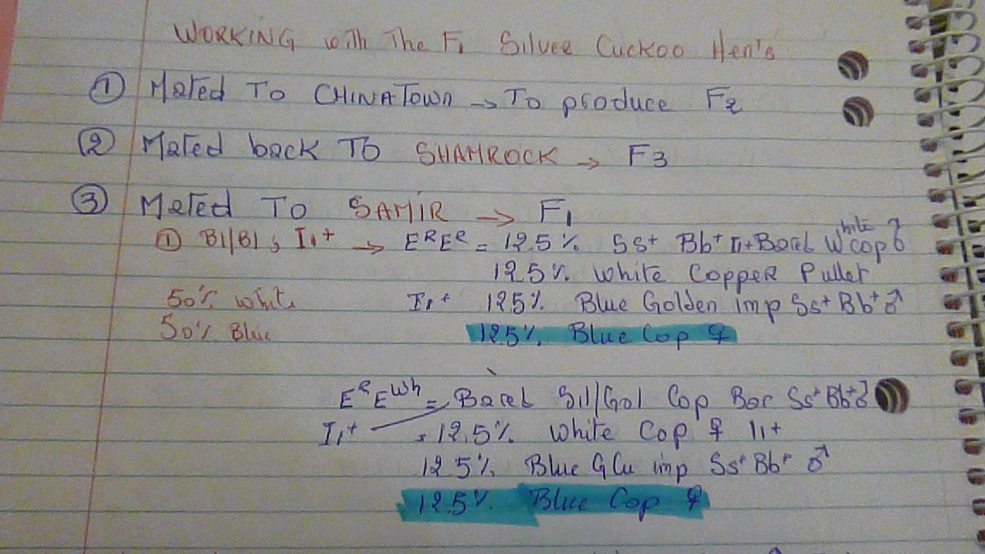 the F1 Silver cuckoo hens breeding chart for this season;![]()