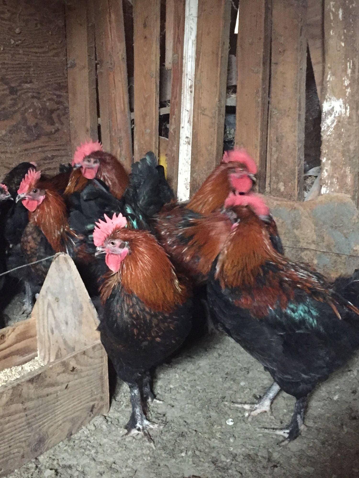 Getting ready for the freezer. One lucky guy will be saved. It's a toss up between 3 of the 10. My favourite one body wise is too dark( hackle colour more mahogany and not too much of that and not much saddle color at all) but he's huge. Second is not much smaller, proper colour but not much saddle colour so far. Third is smaller( not nessasarily undersize) and has decent colour throughout. I just kinda like the 2 big boys( they were from smaller nice colour roo over an all black hens that were quite large