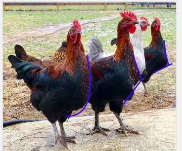 I like to think of the chest as a boat bow, like Blade. That is what I want to see. Illustration and quote from French Marans Club page on Ideal Silhouette.thanks for posting your pics redbanks, i have a question about the chest of a maran and I hope you don't mind me using this opportunity to ask. 2 of my roos seem to look more like copper ...where as blade and shy guy have more of an obvious angle and look more like one of the other roos that I have. I have noticed this difference in my own flock. However, I'm not sure which is preferred. Its something I have been wondering about for awhile but i didn't have any good pics to differentiate between the types of "chest" presentation that I see in my coop and I don't know if I could ever manage all 3 of them in one shot, that in and of itself is lucky.