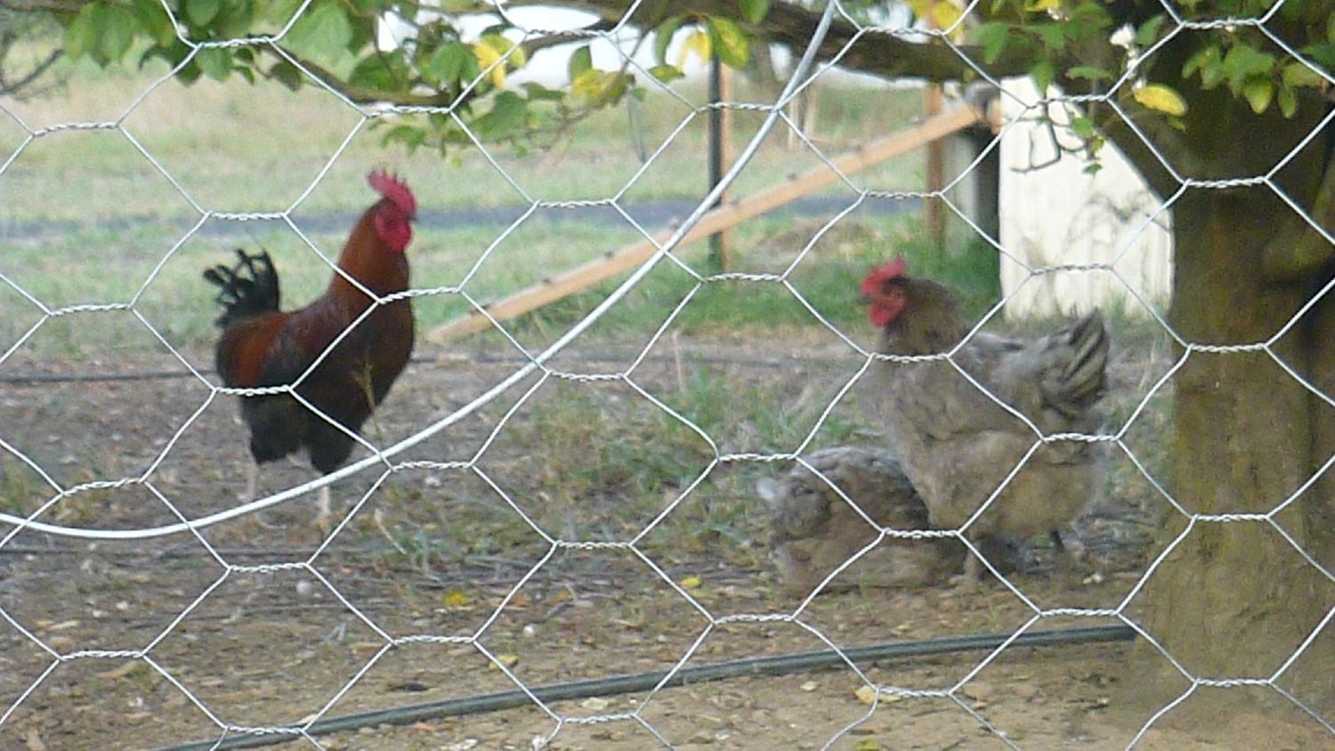 We like to feed twice per day, once in the morning and once in the evening. But where we work we usually can only get one feeding in per day. They also scratch wheat straw and get scraps (bread, dry cereal, table scraps, etc). They are all healthy, but not fat.
