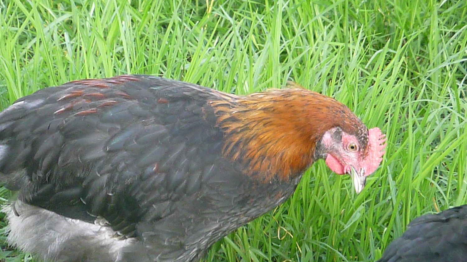 BCM cockerel 11 week old, the copper just start showing up on his hackle . he is more of black type like his mum Tabarine. but he is great type and well put together .