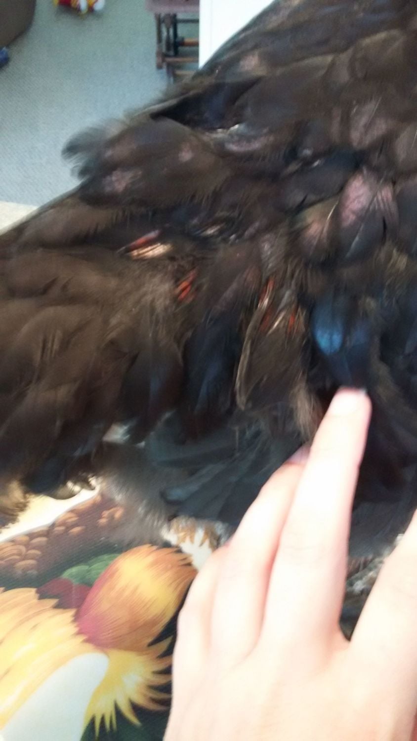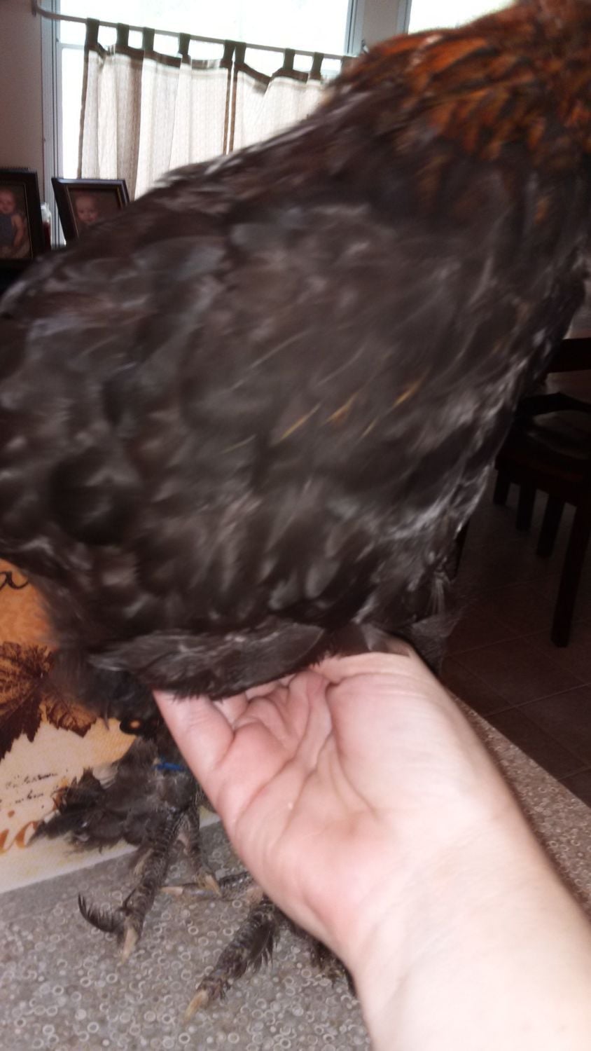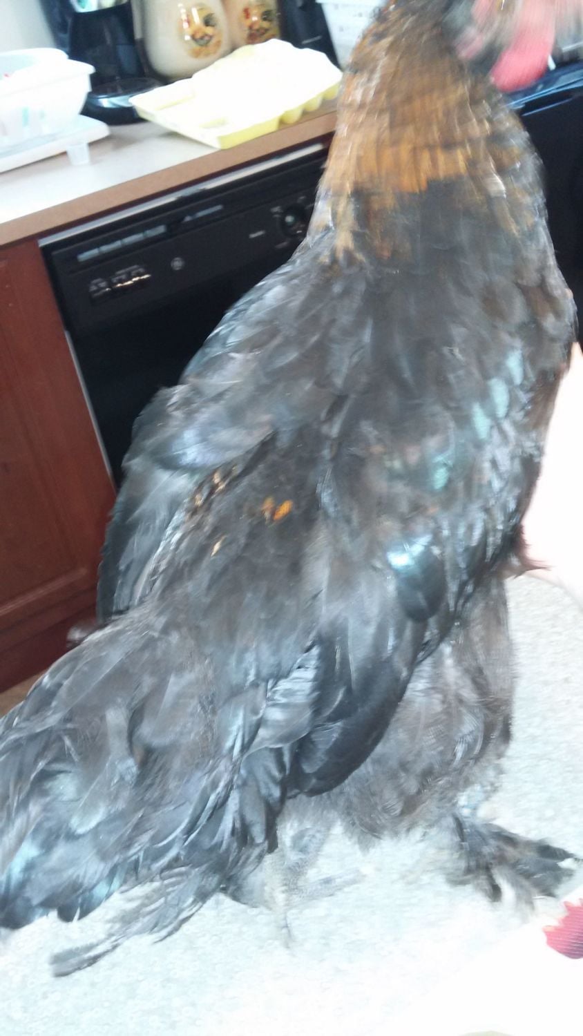 Roo #2: hatched from #4 colored egg, may mature out to have too much copper in chest, holds his tail wierd sometimes (possible wry tail).