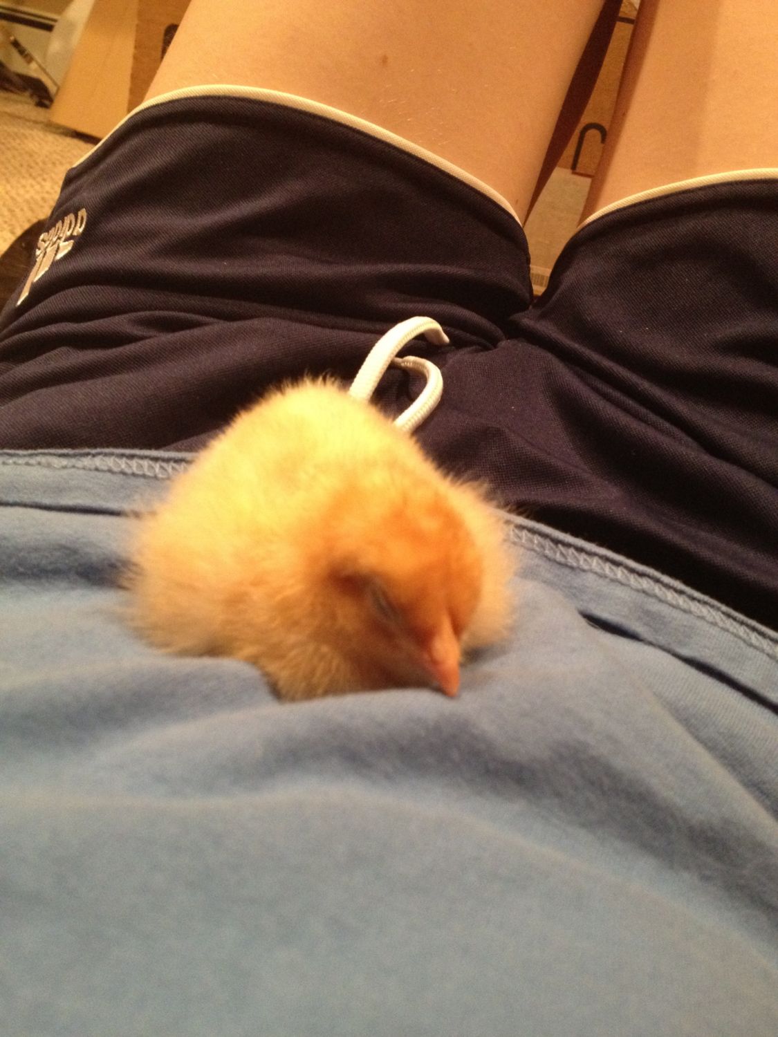 We recently acquired a Black French Copper Marans that is approximately 2 weeks old to add to our established flock. She is possibly the sweetest tempered little thing I've ever met. What I find intriguing is that she likes to preen me. Yes. Preen. She follows me exclusively, and will do whatever it takes to make it to my shoulder to preen my hair. She has twice now jumped straight up from the ground to my hip, then from my hip scaled up my side to my shoulder (in ninja like time) just so she can preen me! I've never even seen another 2wk old jump that far, let alone with such determination. She nuzzles and coos and preens me for as long as I'll let her...which isn't always long considering how much it tickles.