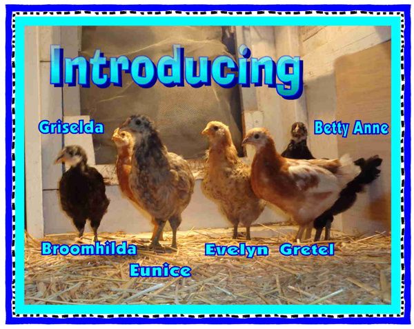 Absolutely love the names! After a 25 year break, I too finally have another flock of chickens and chicks. I forgot how much fun they are!