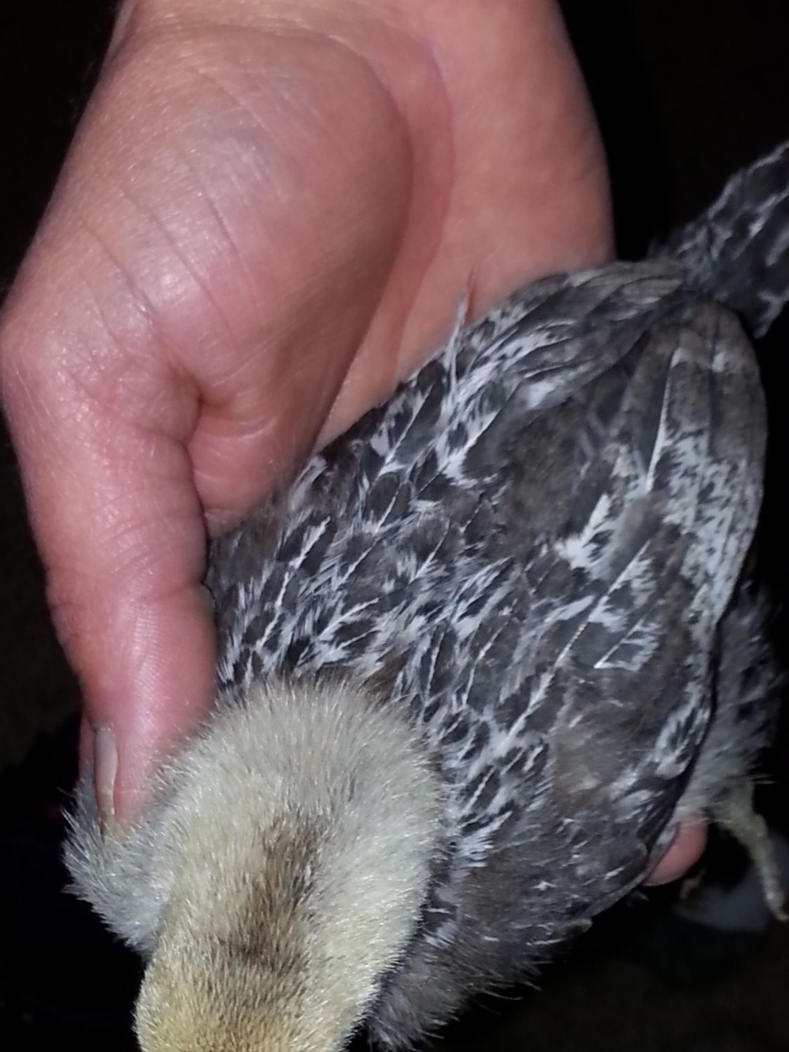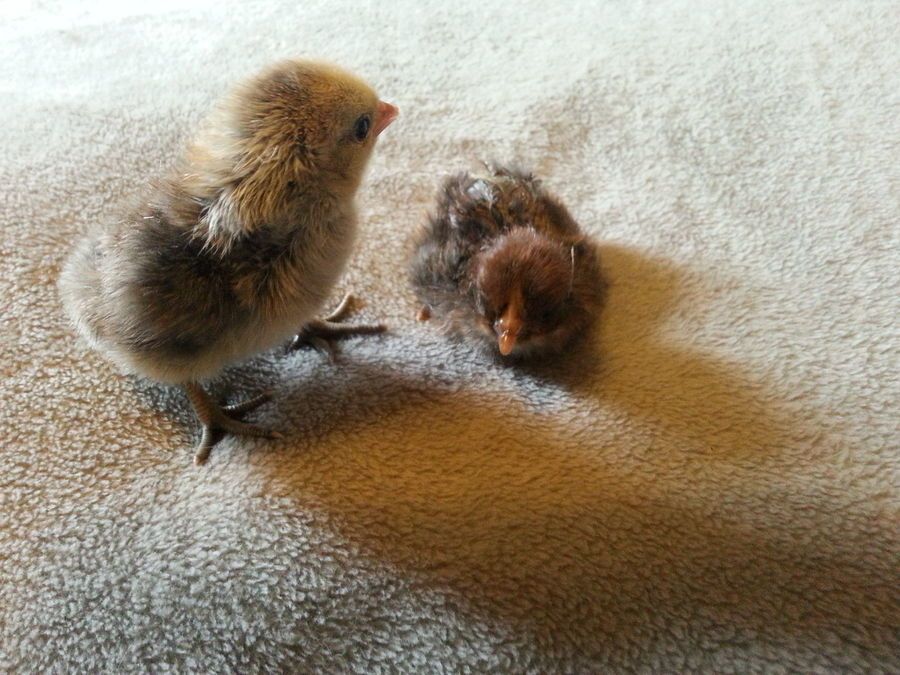Both of these chicks appear to be cockerels. I do see some blue hues in the feathers of the brown chick which is nice. The brown chick at birth had chestnut and some slight darker brown markings on it, not super obvious. The lighter chick seems more on the smokey variety.