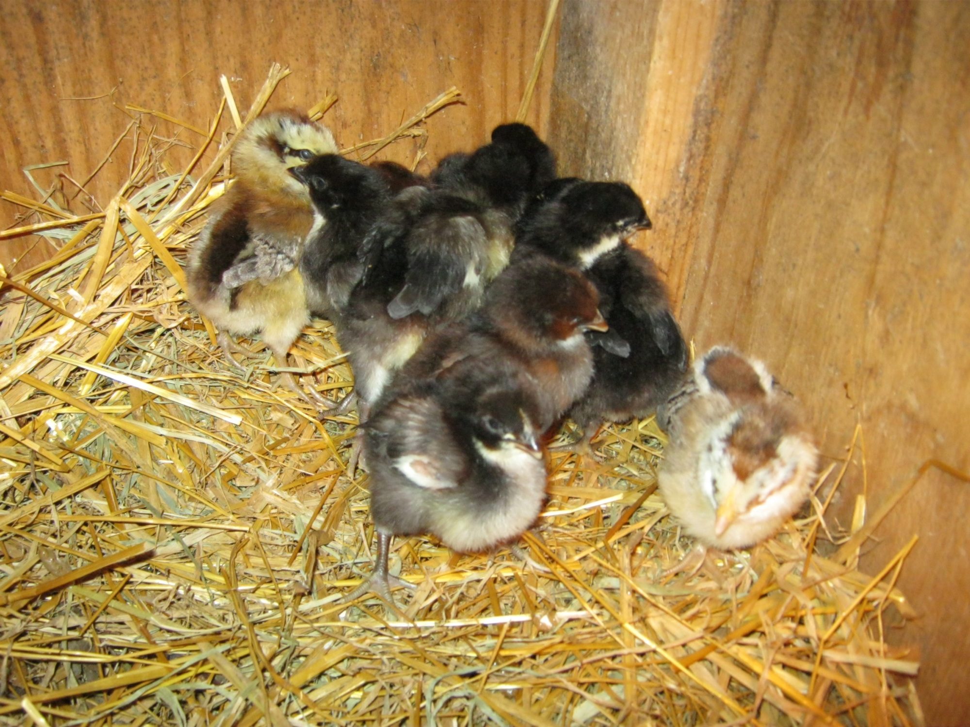 Last night our power went out from 3:50-6:40am. We were just completing a hatch of mixed old english game bantams, but we got 37 of the 40 eggs hatched before the power gave out.