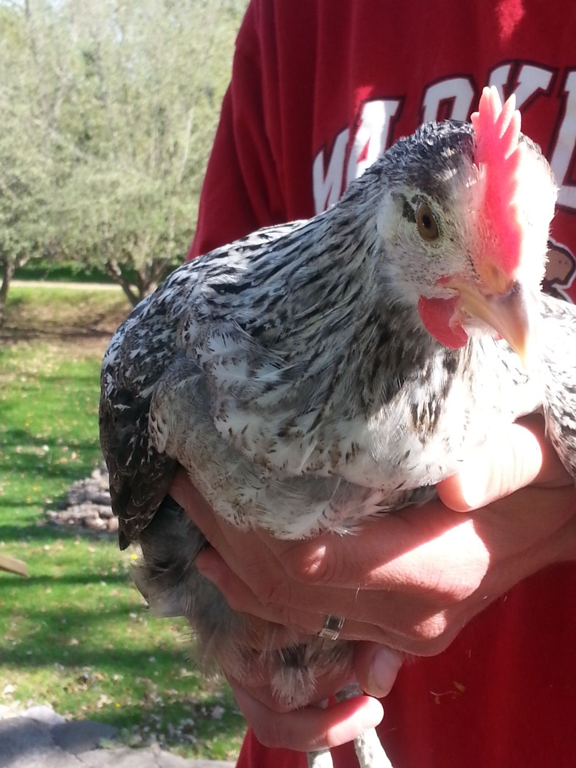 Now, is Gandalf considered a Silver? Is Sweetie a silver pullet by what you can see in these photos? Does very light beige show up on anyone else's silver pullets in the wing feathers? Sweetie has beige in her wings only.