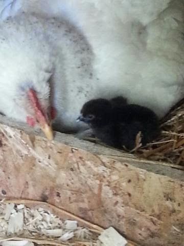 Our first broody successfully hatched this cutie Iowa Blue less than 12 hours ago!! This one is all solid color, very dark brown and looks very similar to our other charcoal when it was born! These birds are so hearty and full of personality!