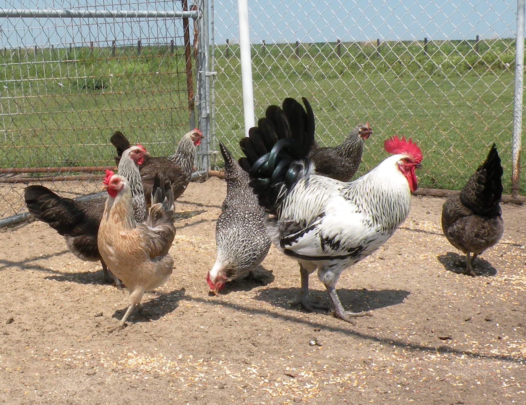 My Iowa blue roosters would come to the house (about 50 yards) every morning and get on the chairs on the front porch and crow in the front windows. I've raised chickens for 25+ years and they are by far the most adventurous chickens I've ever raised. It amazes me how acutely aware they are of whats going on in the sky and will herd the entire flock into the hen house if they see something they don't like. They will also head 50 yards the other direction and hang out under the mulberry tree, enjoying the berries. I sold all of the hens 'cept one and she turned out to be pitch black. They came from Ideal. Think she will have more appropriately colored offspring?