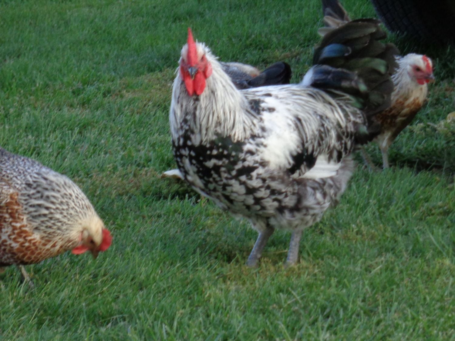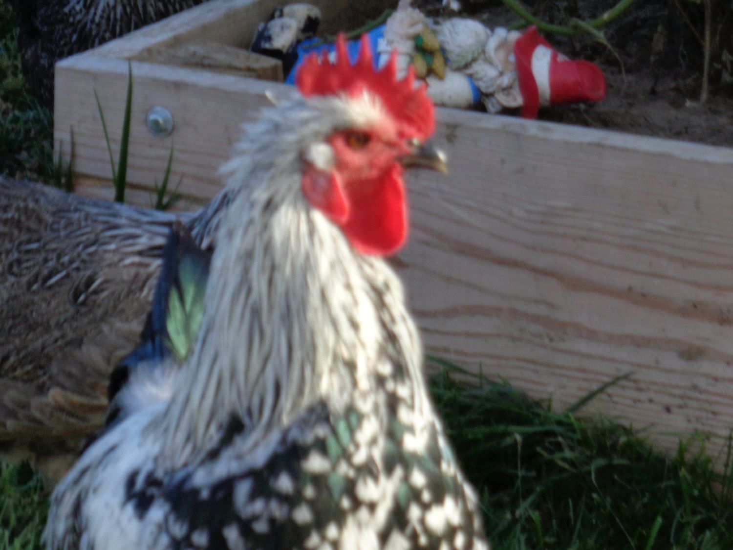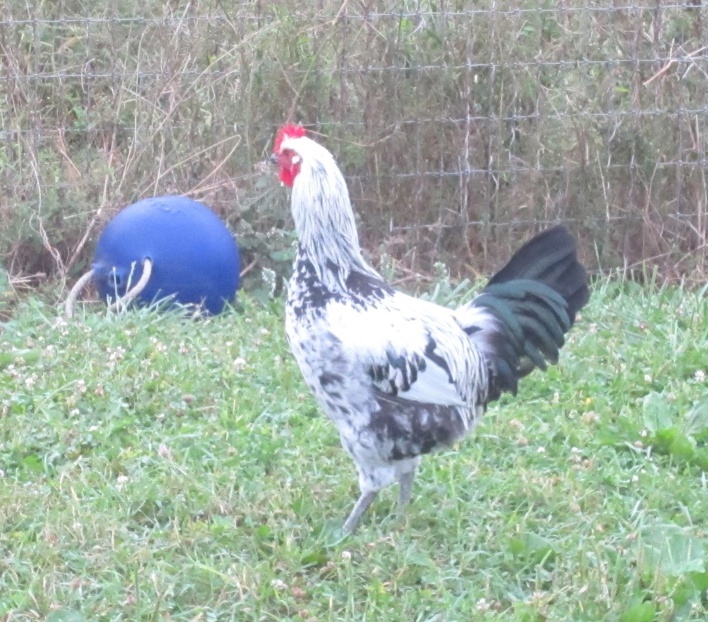 I really like the way this guy is turning out. He is becoming protective of his hens at around 5 months, and just developing a personality. A silver.