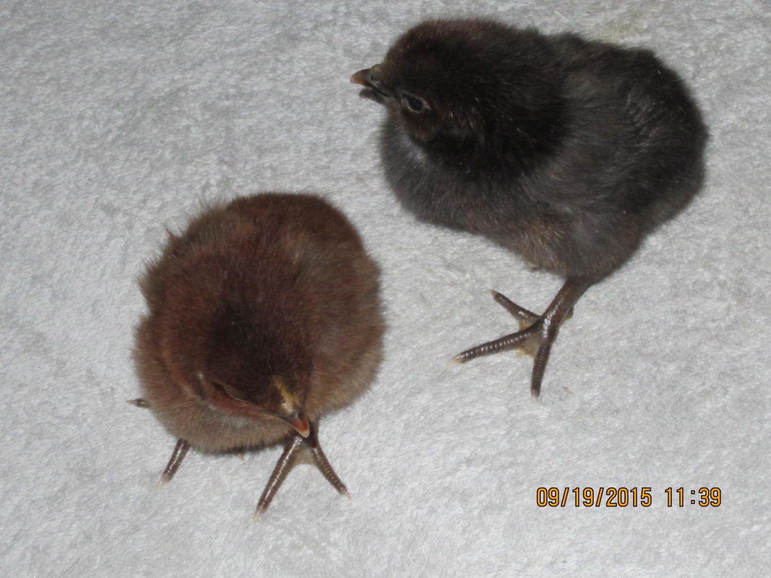 Chick on the left is our "brownie" hen ...with what is thought to be "perfect" down color