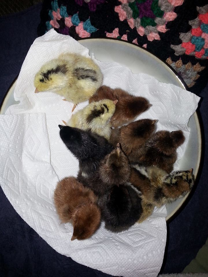 @Wappoke I am adding a couple of bowls of our spring hatch to show you the chick down we have been getting from our flock since we added some of the Jamaican line of Iowa Blues (they are much smaller birds than ours, but they were added to give us that silver blood that we thought we needed). I would love to hear your analysis of our chicks from our current flock and if we are on the right track to getting more dark gray/charcoal fluff :) Thanks!