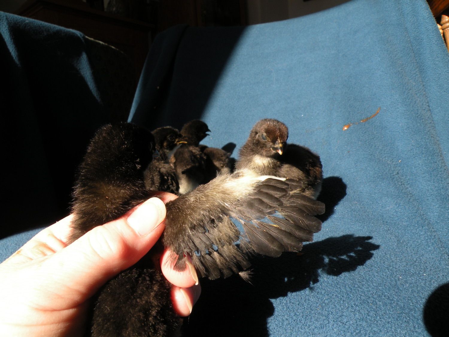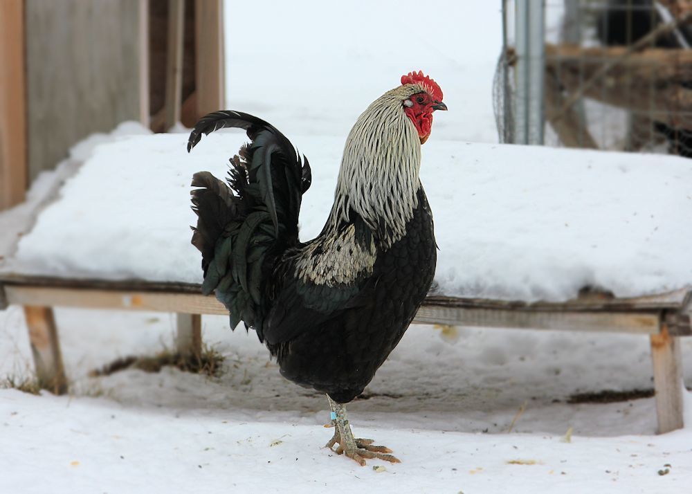 Nice pics...I am so glad I don't have all that snow to deal with...not that cold red mud is any better...lolWanted to take a bunch of photos of the older birds today, but camera battery had other ideas. LOL Here are a couple I managed to get along with some IB chick pics from my little test NYD hatch. Poor rooster had a wind from behind blowing his tail feathers awry, but that is his full attention/alert stance - tail straight up, upright stance.