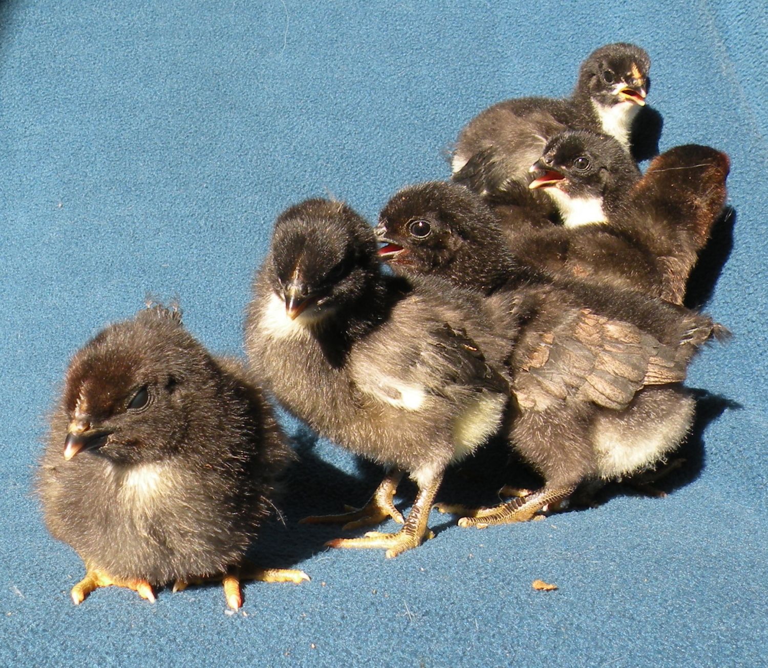 These last two are a young pair growing up...this is where the camera died, so the only shots I got. Apparently this week they all decided to begin a molt, of all the times to start. Feathers were everywhere!