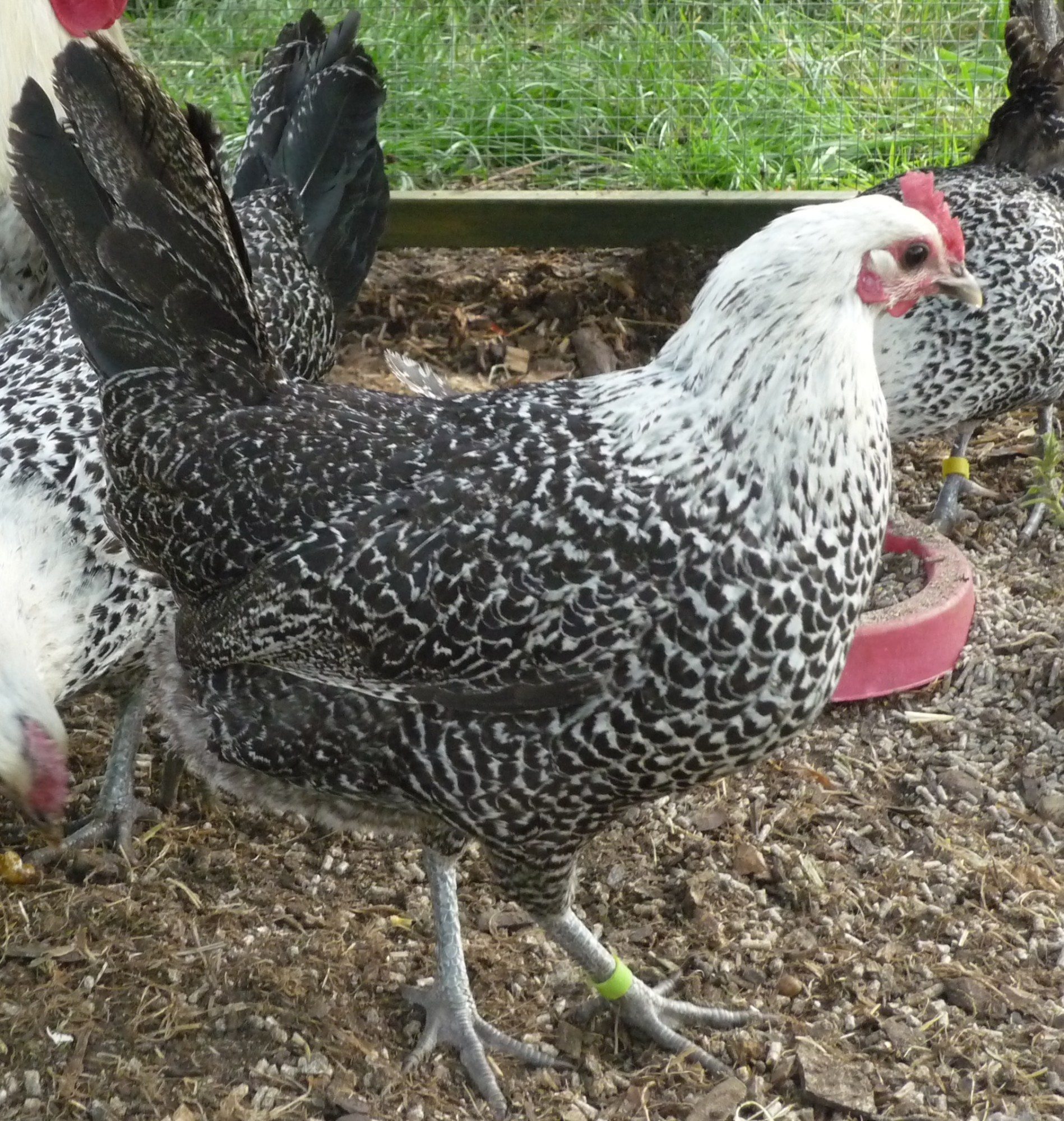 If you were to write out the whole thing it would be ap+/ap+. It does lurk in the hens some, but I've been able to cull most of it out of my flock. That's why I don't have an SP cock at the moment. I lost the only one I had without it at a young age.What about ap+/ap+ with respect to Connie's desire to rid the genome of Ap? Is this bit expressed in the full equation ? How does it work its way out unless there is heavy outcrossing? What breed now exhibits the most desirable (and stable) silver pencil pattern - rocks, hamburgs, campines, fayoumi....? Stability of pattern and color is where we are at the moment in our planning.