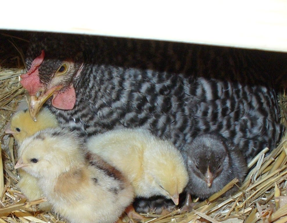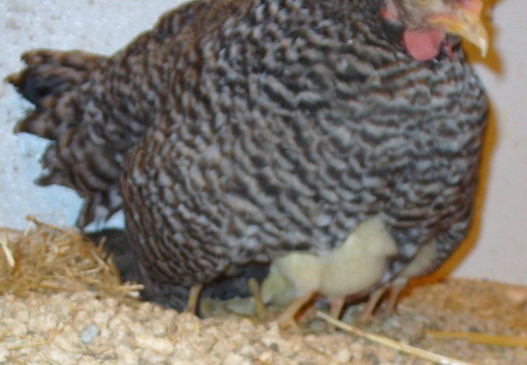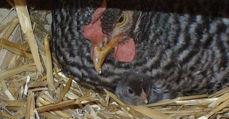 Just heard my first little baby cheeping under the broody! Can't see anything of course, but so far so good- broody seems to be making all the right moves and is responding to the little voice below.