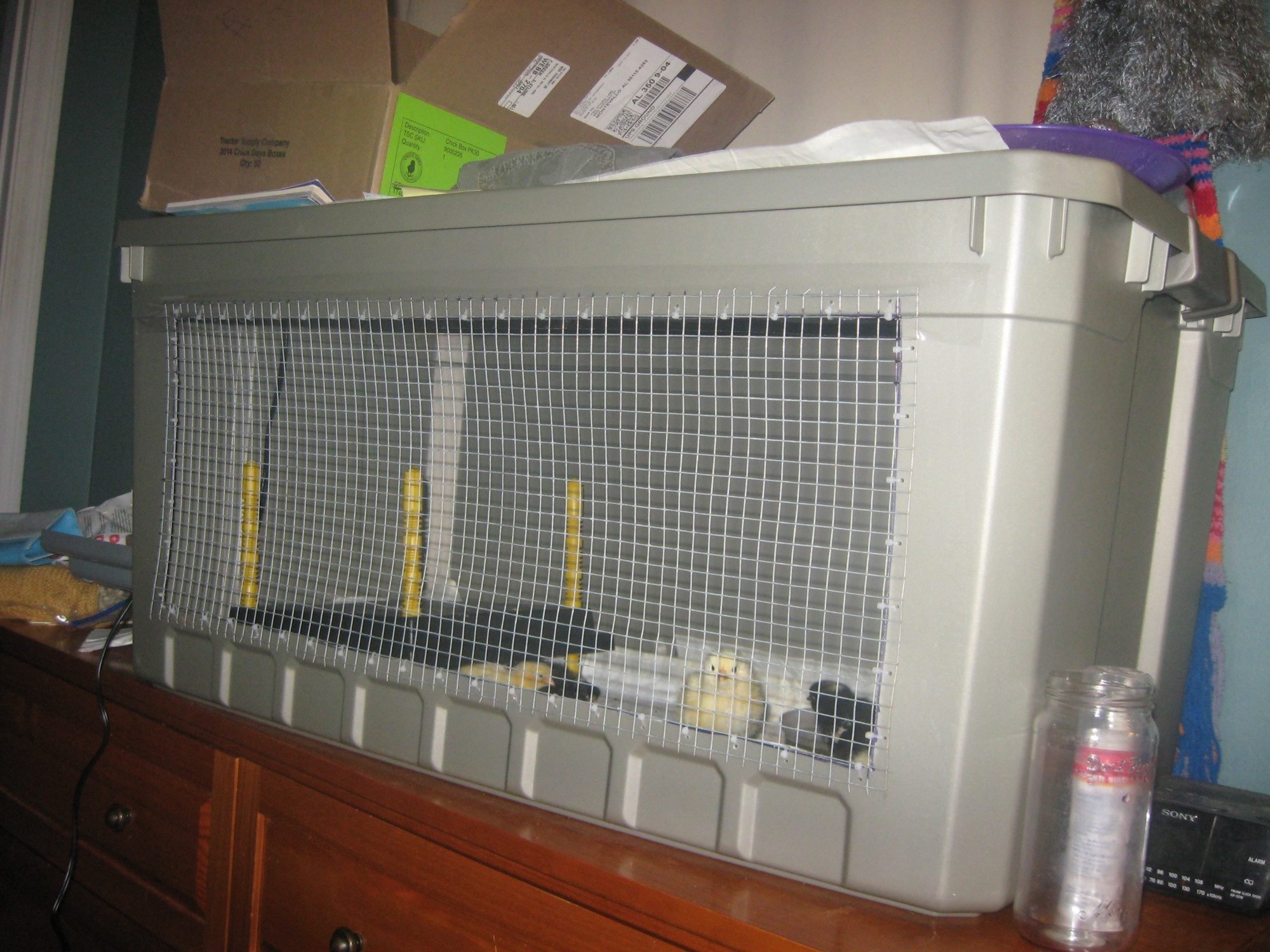 LOVE your brooder! I need a 2nd one that is cat proof and this looks like it would work perfectly!! How did you attach the netting to the tote, by the way?