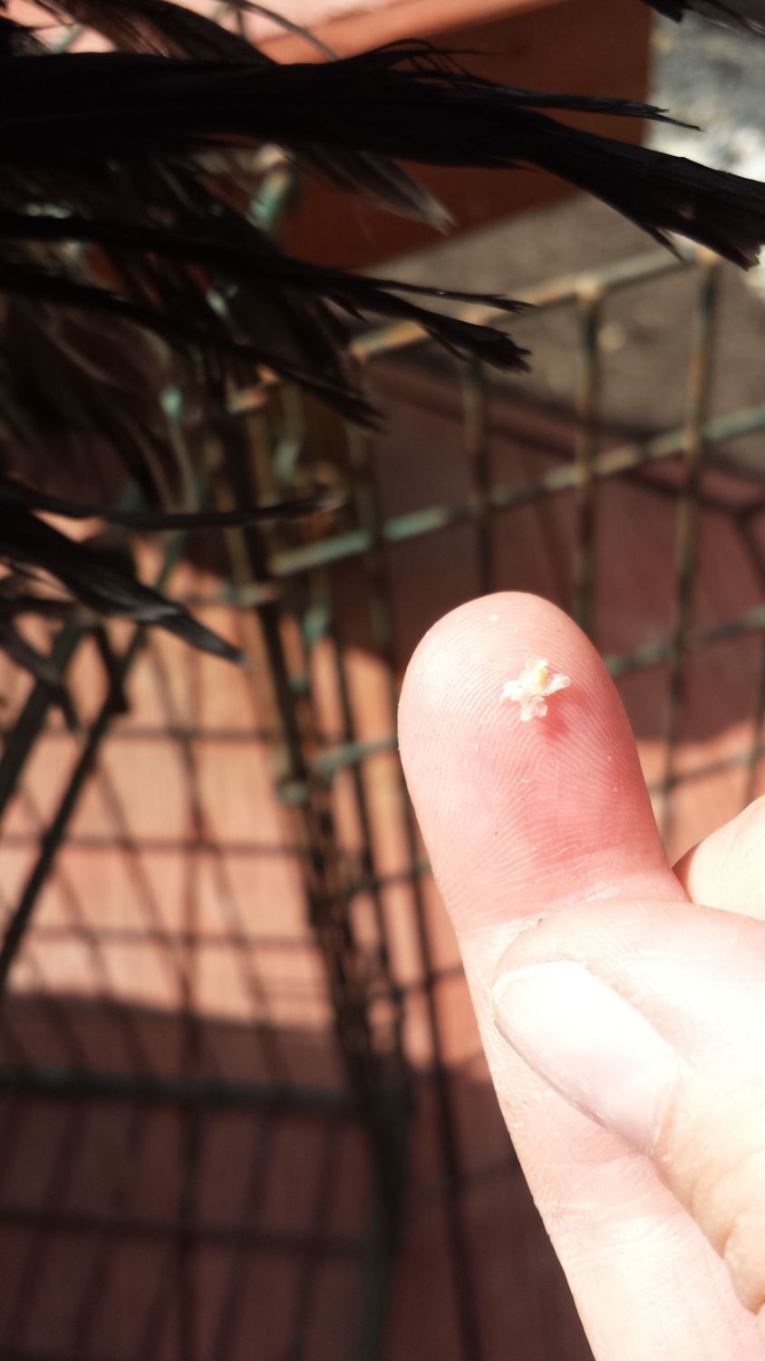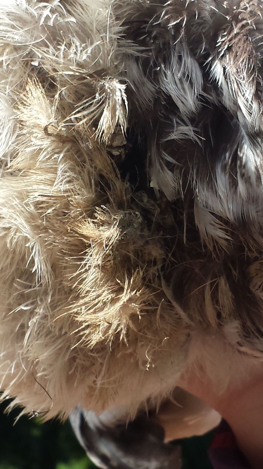 Post bath - are the white things near her feathers signs of something?