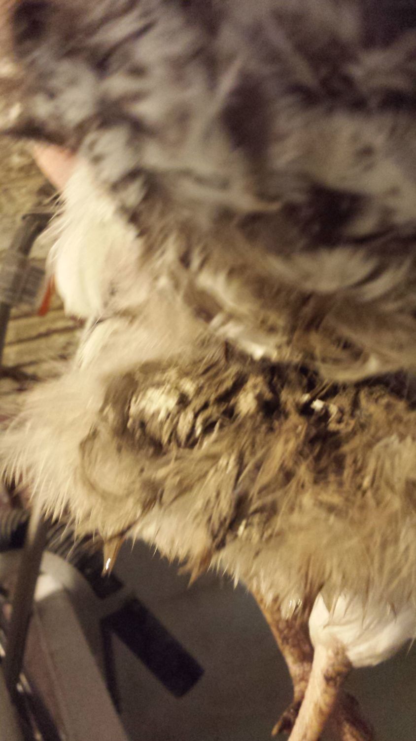 Dirty feathers around vent - pre bath
